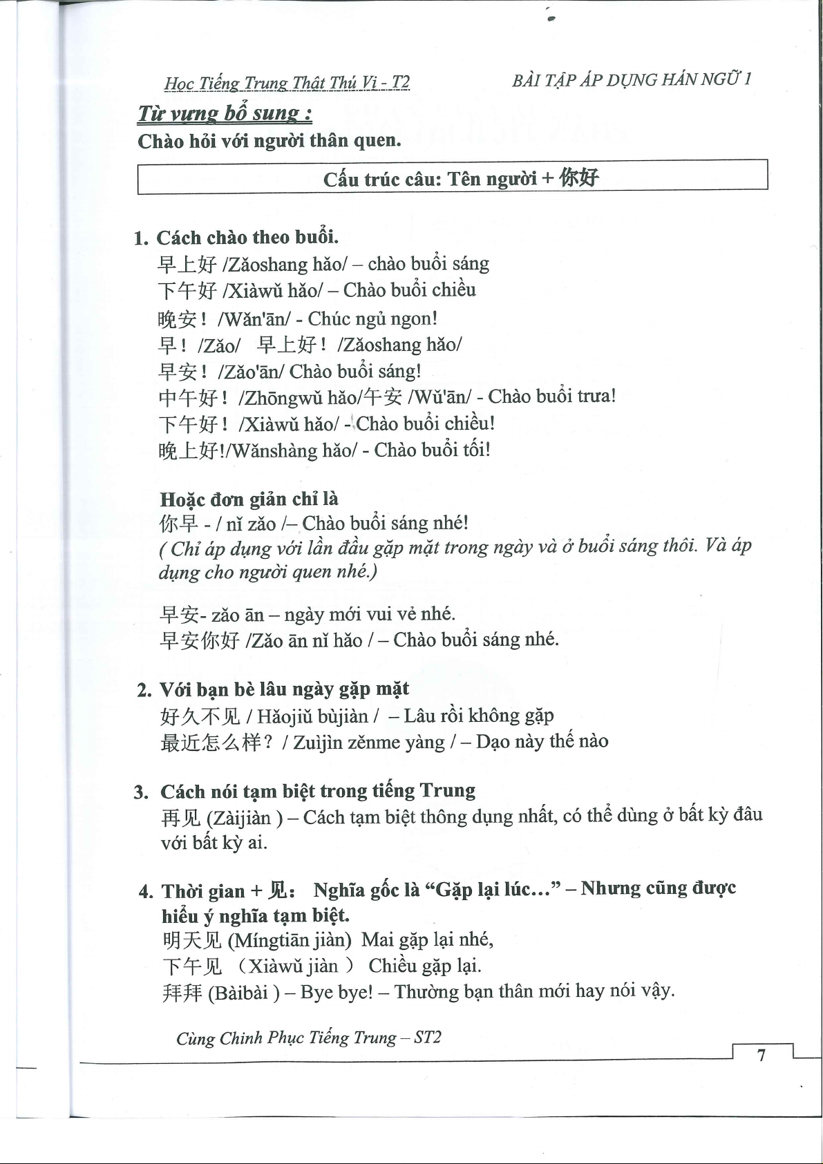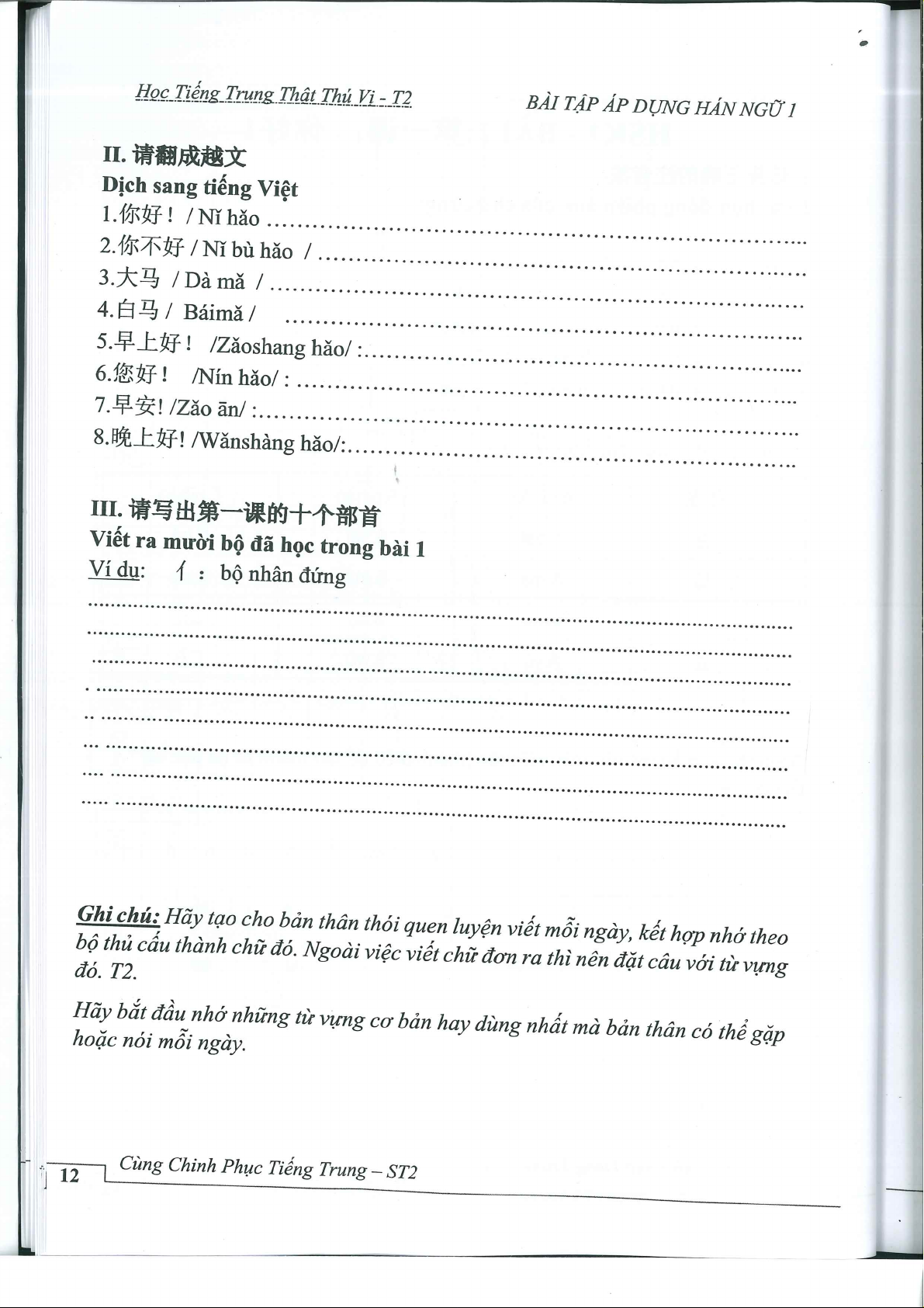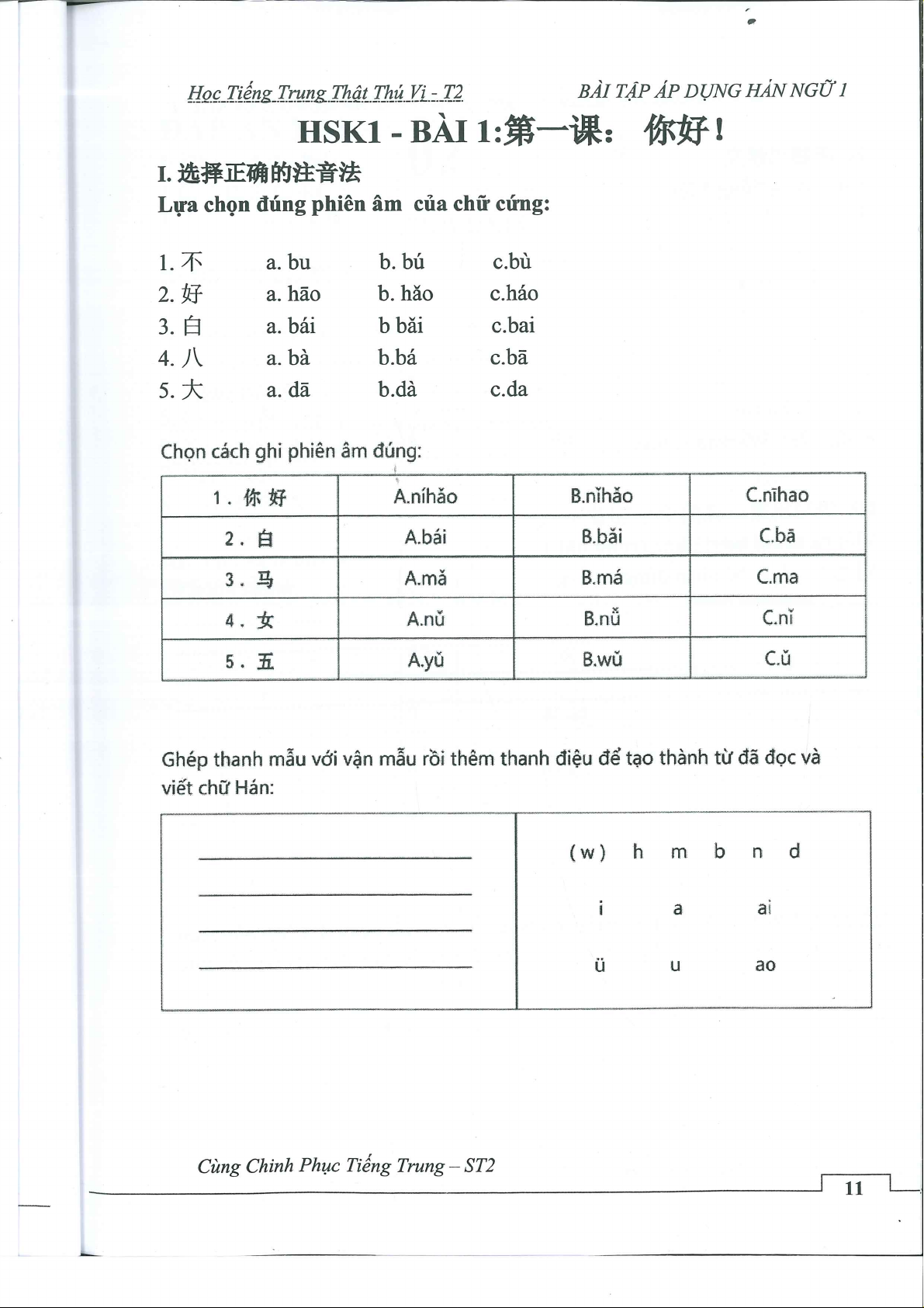 Bài tập nâng cao giáo trình hán ngữ 1