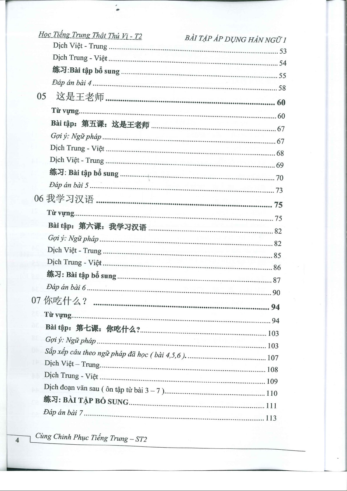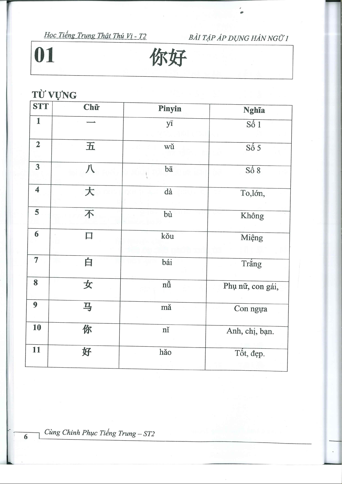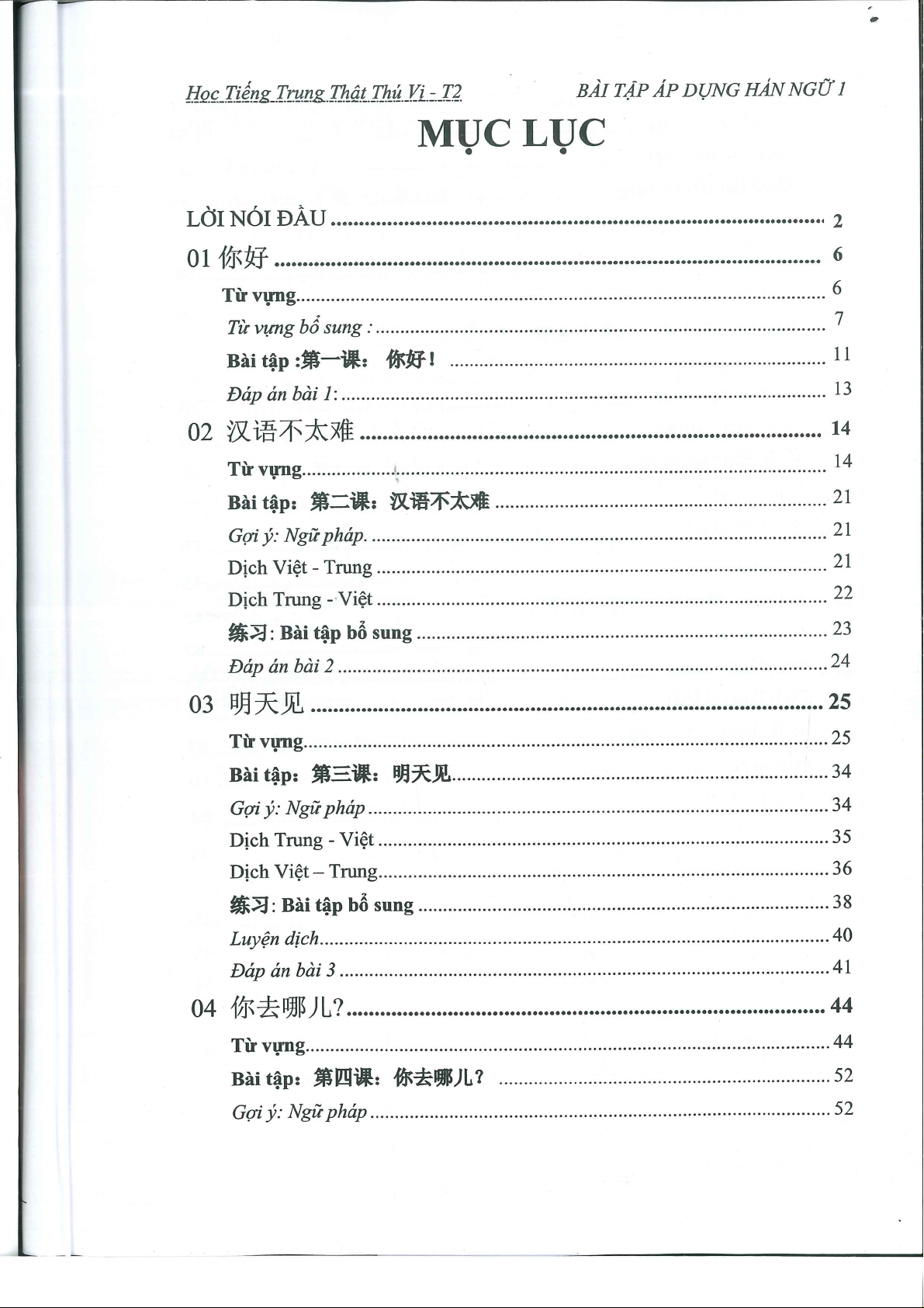 Bài tập nâng cao giáo trình hán ngữ 1