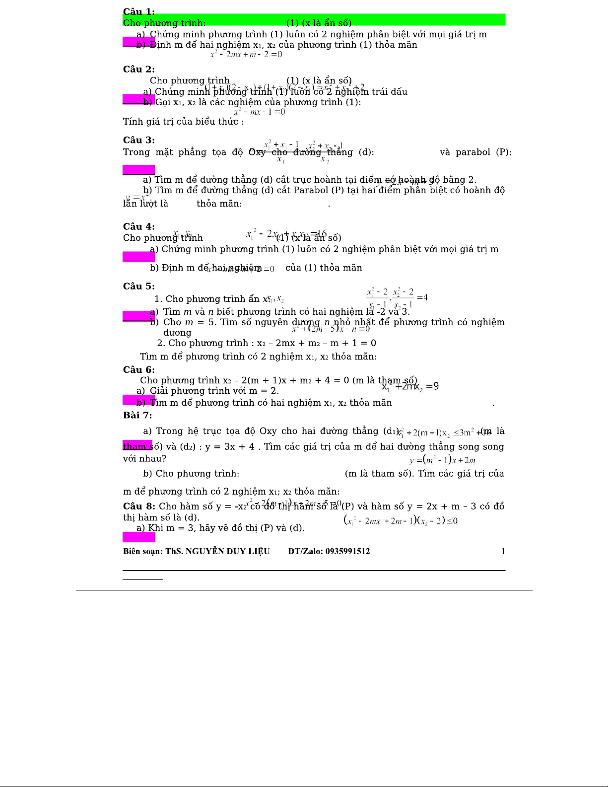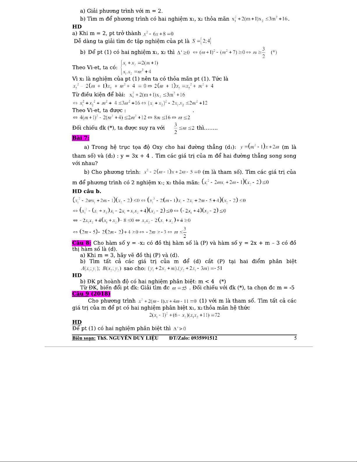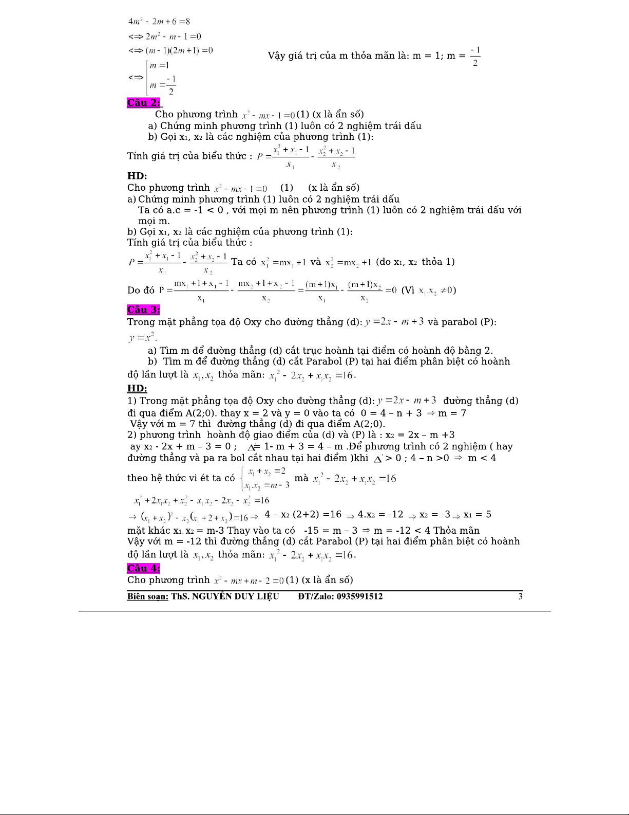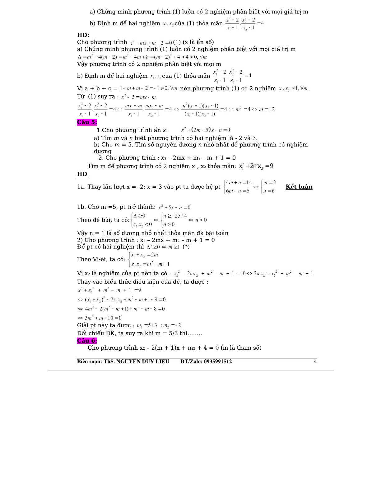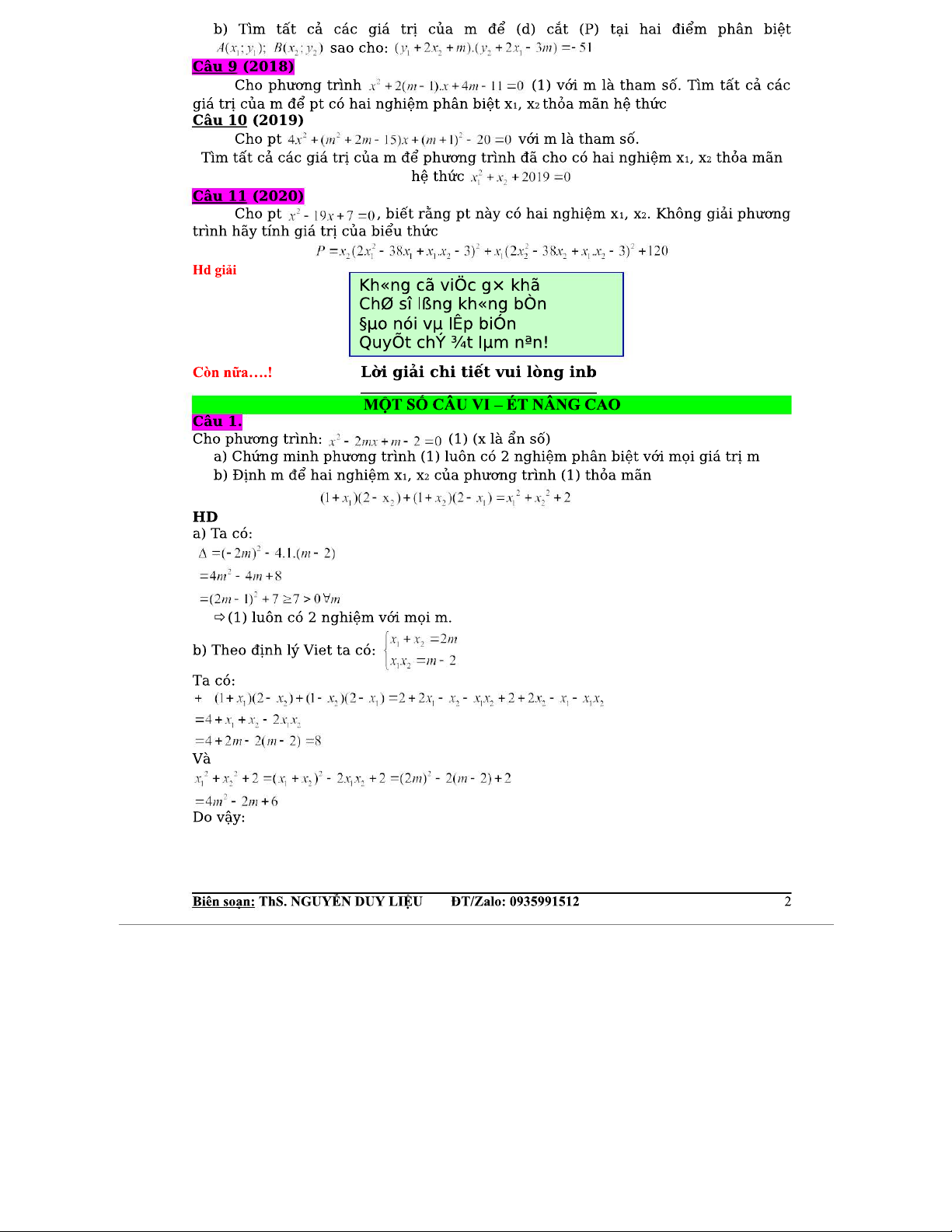 Bài tập nâng cao về hệ thức Vi - ét khó (VIE2023)