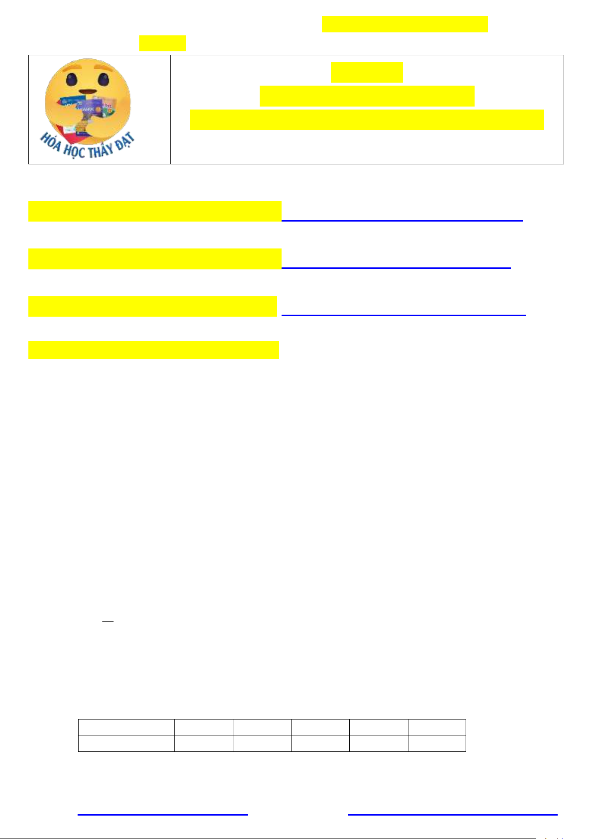 Đăng kí Khóa học Online – Liên hệ: Fanpage Hóa Học Thầy Đạt
