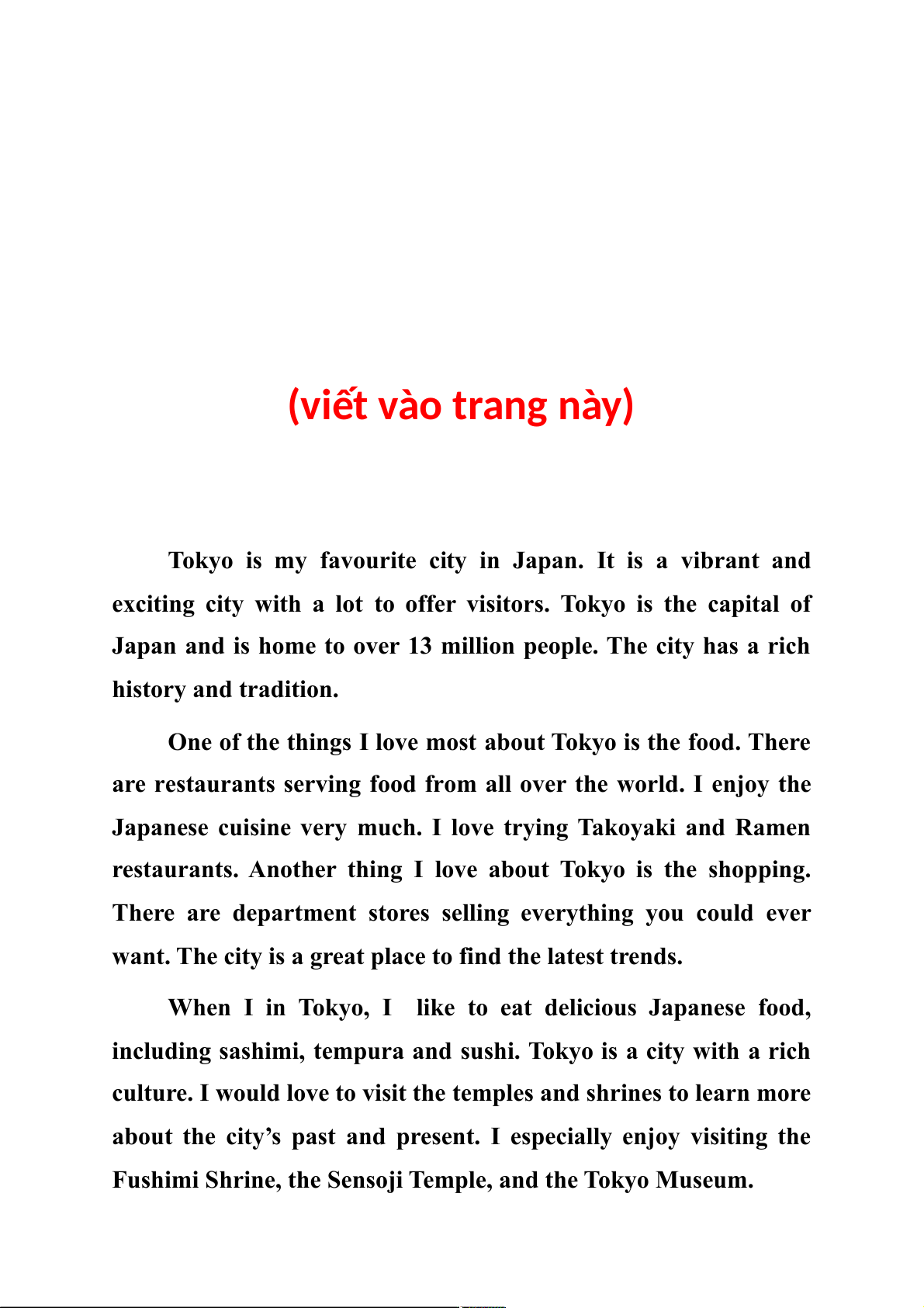 Write about your favourite city. YÊU CẦU BÀI VIẾT