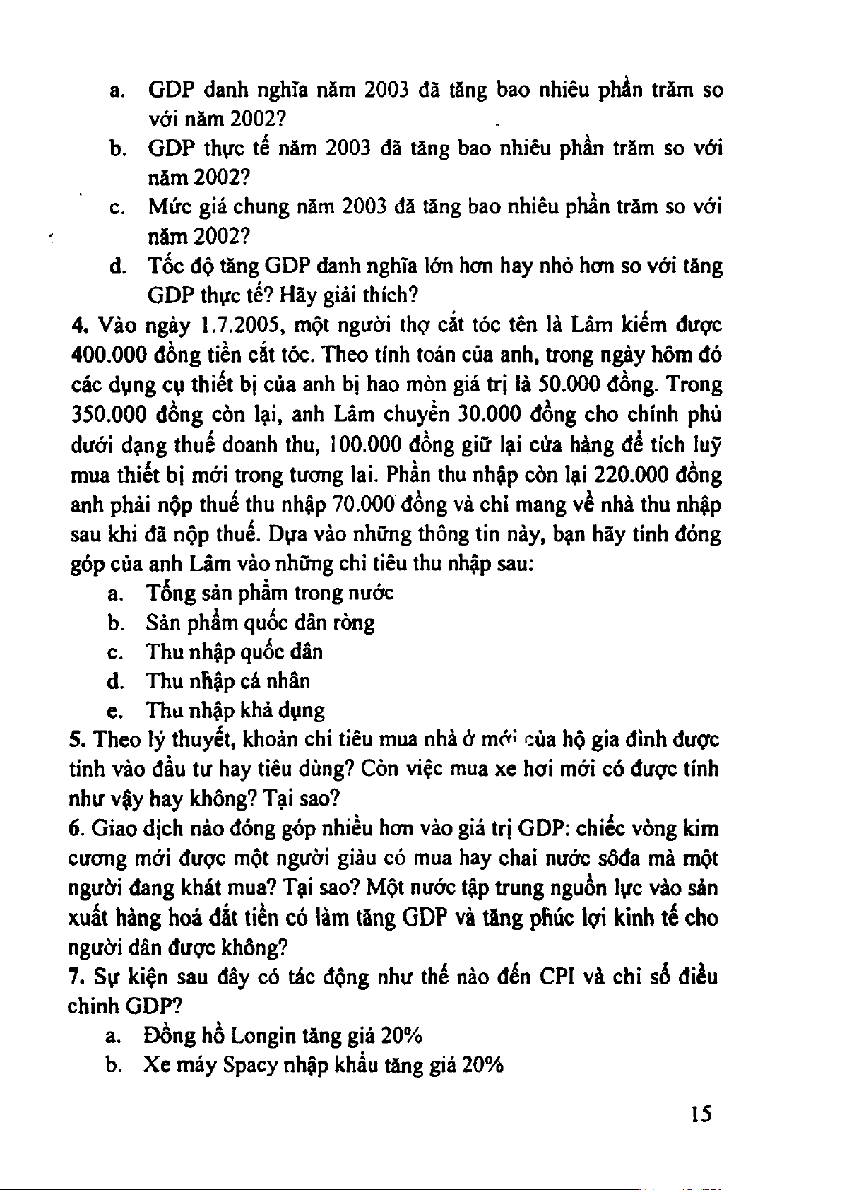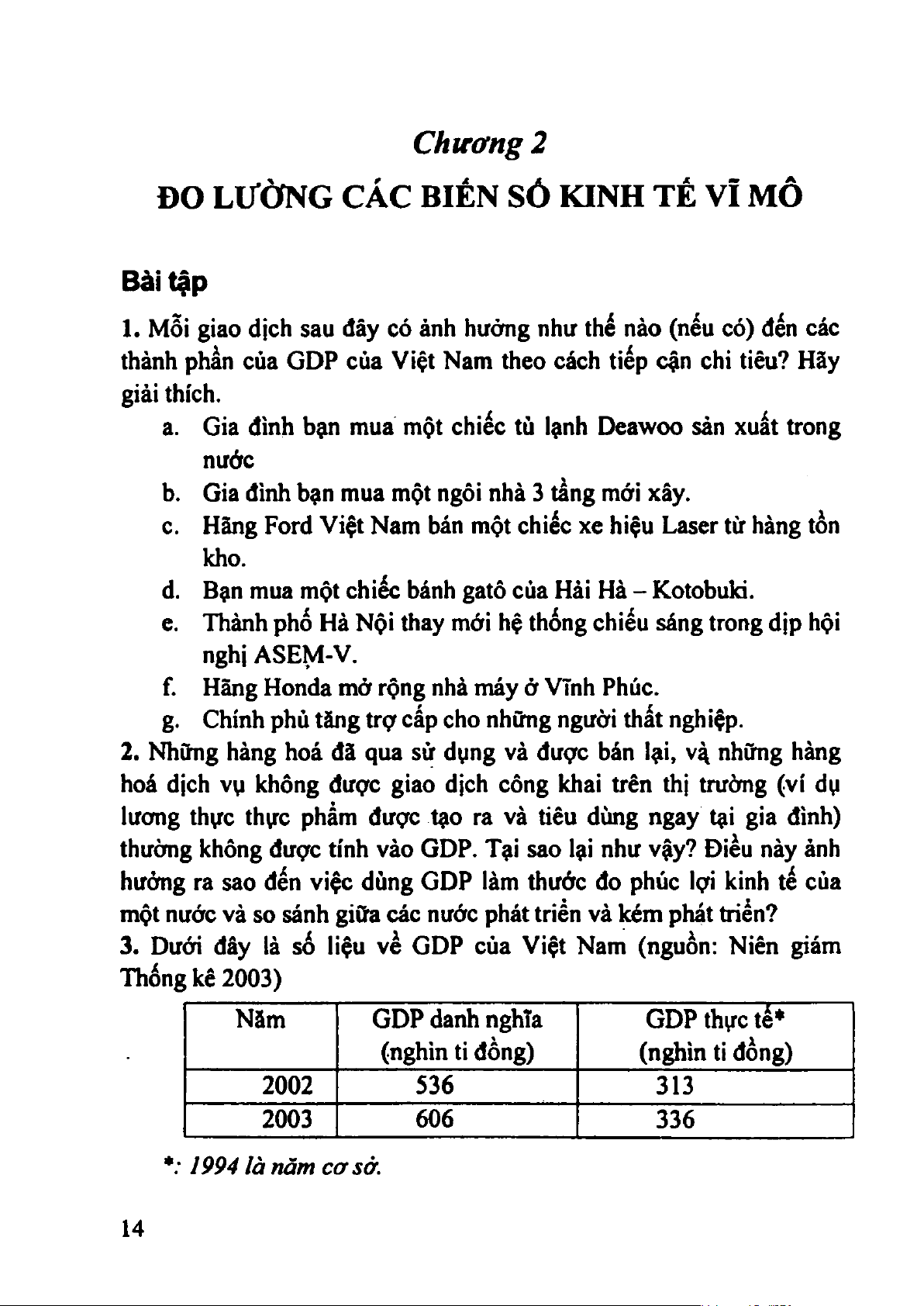 4. GDP danh nghĩa của năm 2003 lớn hơn GDP danh nghĩa của năm 2002 có nghĩa là: 17 ‘ a. Sản lượng tăng b. Sản iứợng giảm