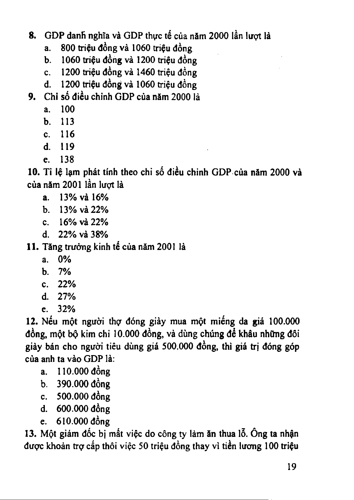 9. Chỉ số điều chỉnh GDP của năm 2000 lả a. 100 b. 113 c. 116 d. 119 e. 138