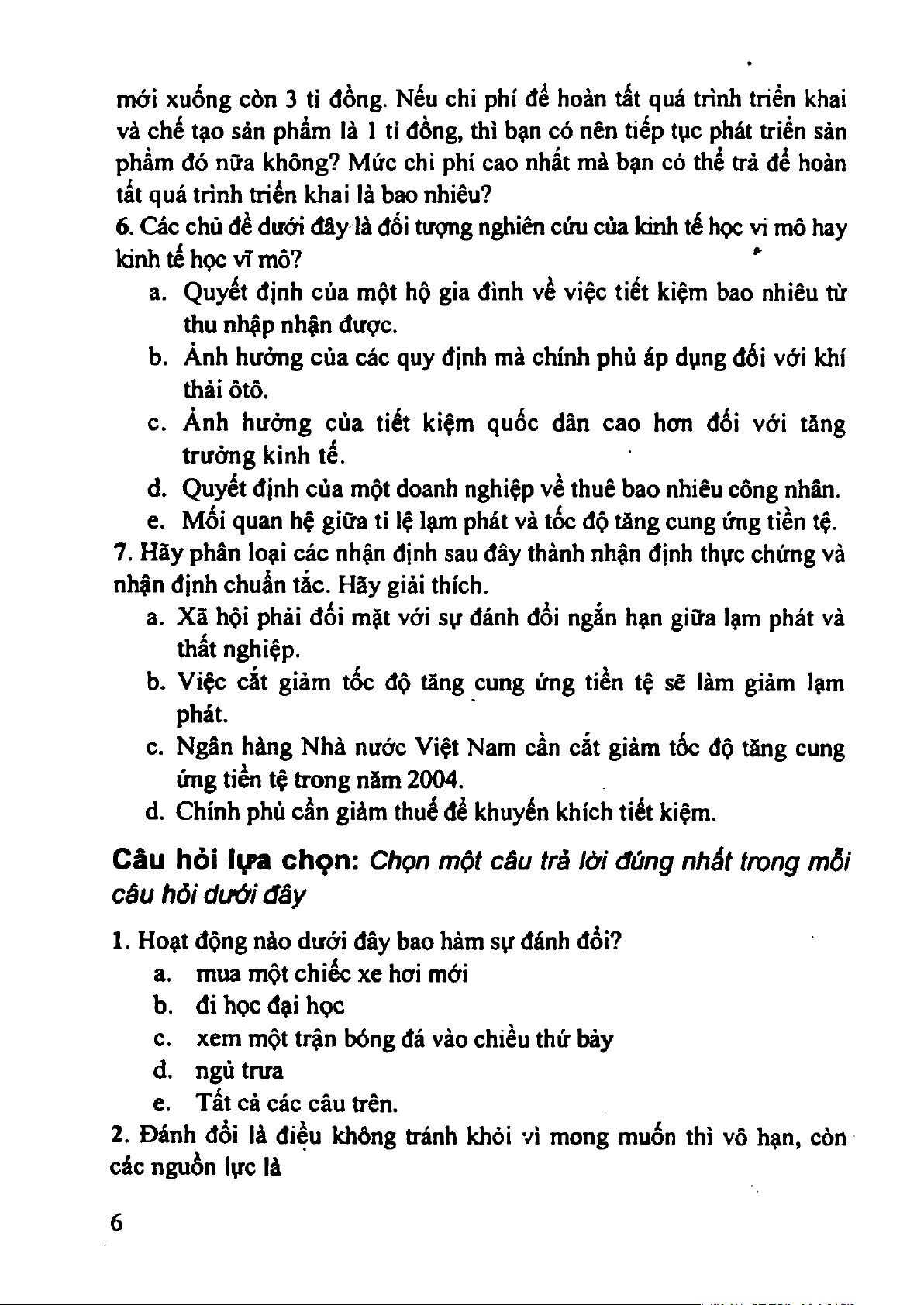 6. Các chủ đề dưới đây là đổi tượng nghiên cứu của kinh tế học vi mô hay Idnh tế học vĩ mô?