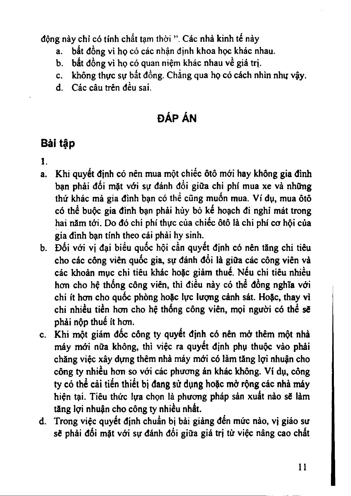 1. Hoạt động nào dưới đây bao hàm sự đánh đổi?
