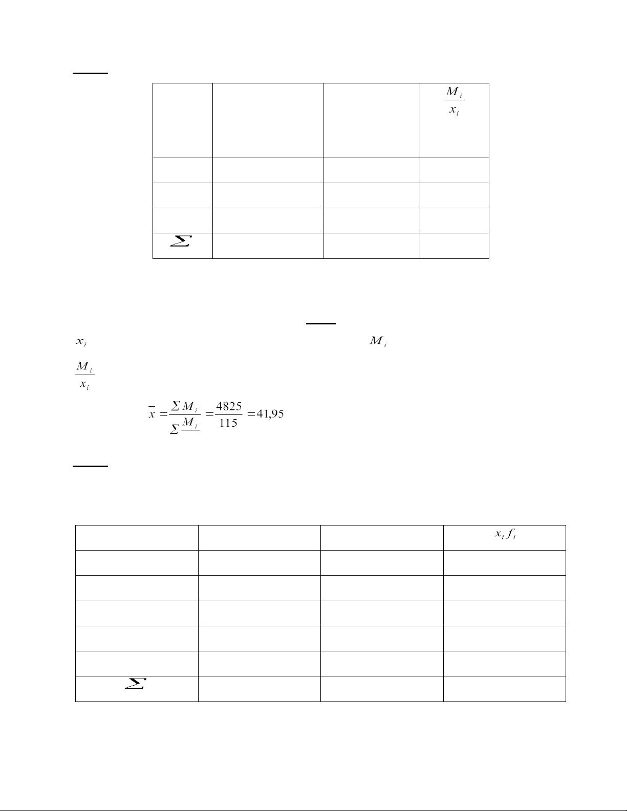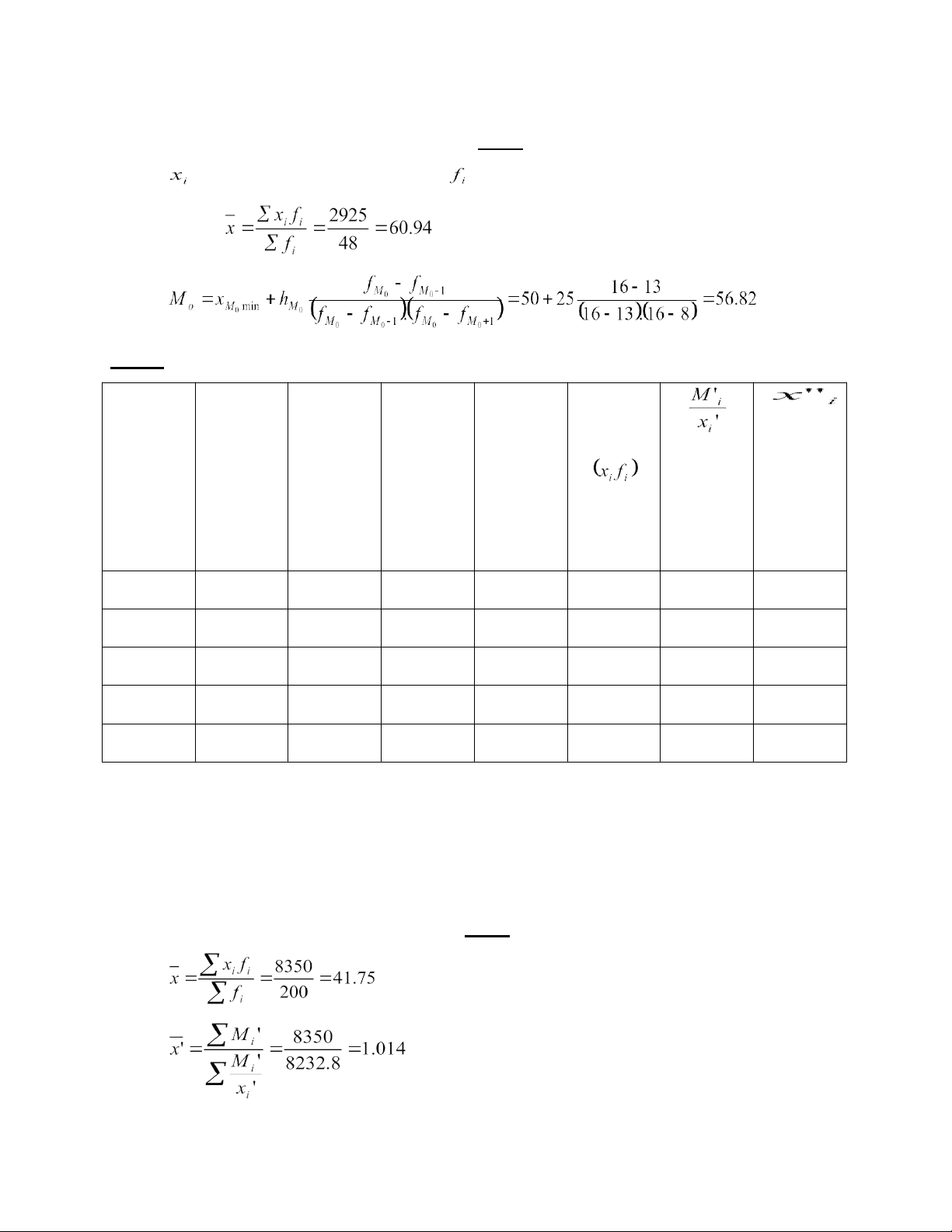c. So sánh kết quả ở câu a và câu b và cho nhận xét về phân phối của dãy số. Giải: a. : Tổng lượng cá : Số thuyền (tạ/thuyền) b. (tạ) Bài 3: Phân Năng Số công % hoàn Giá Sản xưởng suất lao nhân thành kế thành lượng động hoạch 1sp (SP/CN (triệu đồng) A 40 40 98 2.0 1600 1632.6 3200 B 35 50 102 2.2 1750 1715.6 3850 C 50 60 104 1.8 3000 2884.6 5400 D 40 50 100 2.0 2000 2000 4000 2000 8350 8232.8 16450