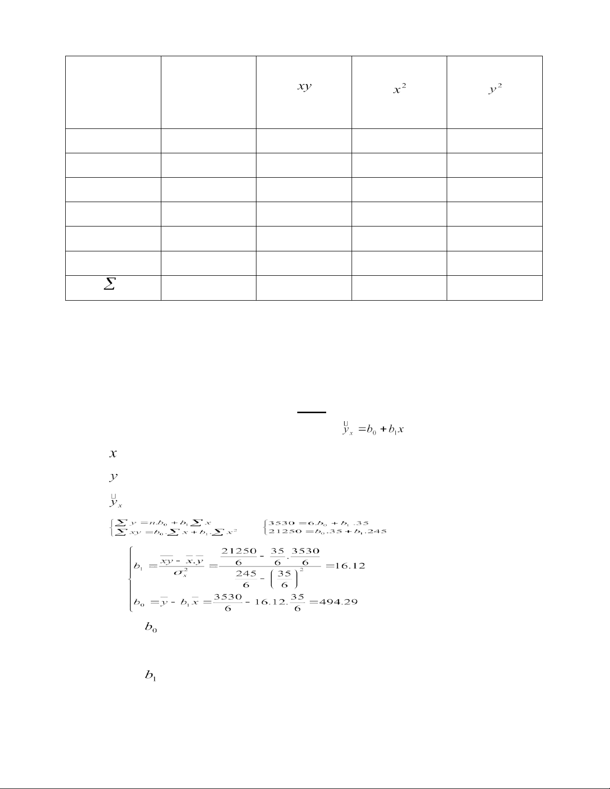 Có số liệu của một doanh nghiệp như sau: Chi phí quảng Doanh thu cáo (triệu triệu đồng đồng) 2 520 1040 4 270400 4 540 2160 16 291600 5 590 2950 25 348100 6 610 3660 36 372100 8 630 5040 64 396900 10 640 6400 100 409600 3530 21250 245 2088700