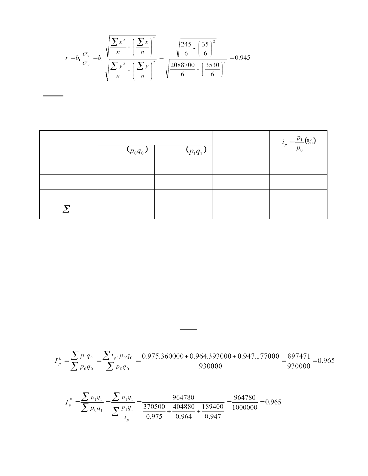 1. Tính chỉ số tổng hợp giá theo các công thức chỉ số Laspeyres và chỉ số Passche.