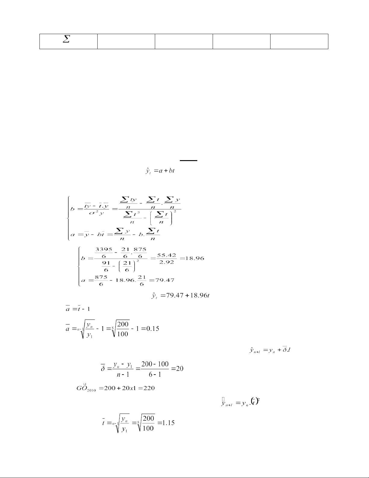 Cho số liệu thống kê về GO của một ngành giai đoạn Năm GO (tỷ đồng) 2004 100 1 100 1 2005 120 2 240 4 2006 135 3 405 9 2007 150 4 600 16 2008 170 5 850 25 2009 200 6 1200 36 875 21 3395 91