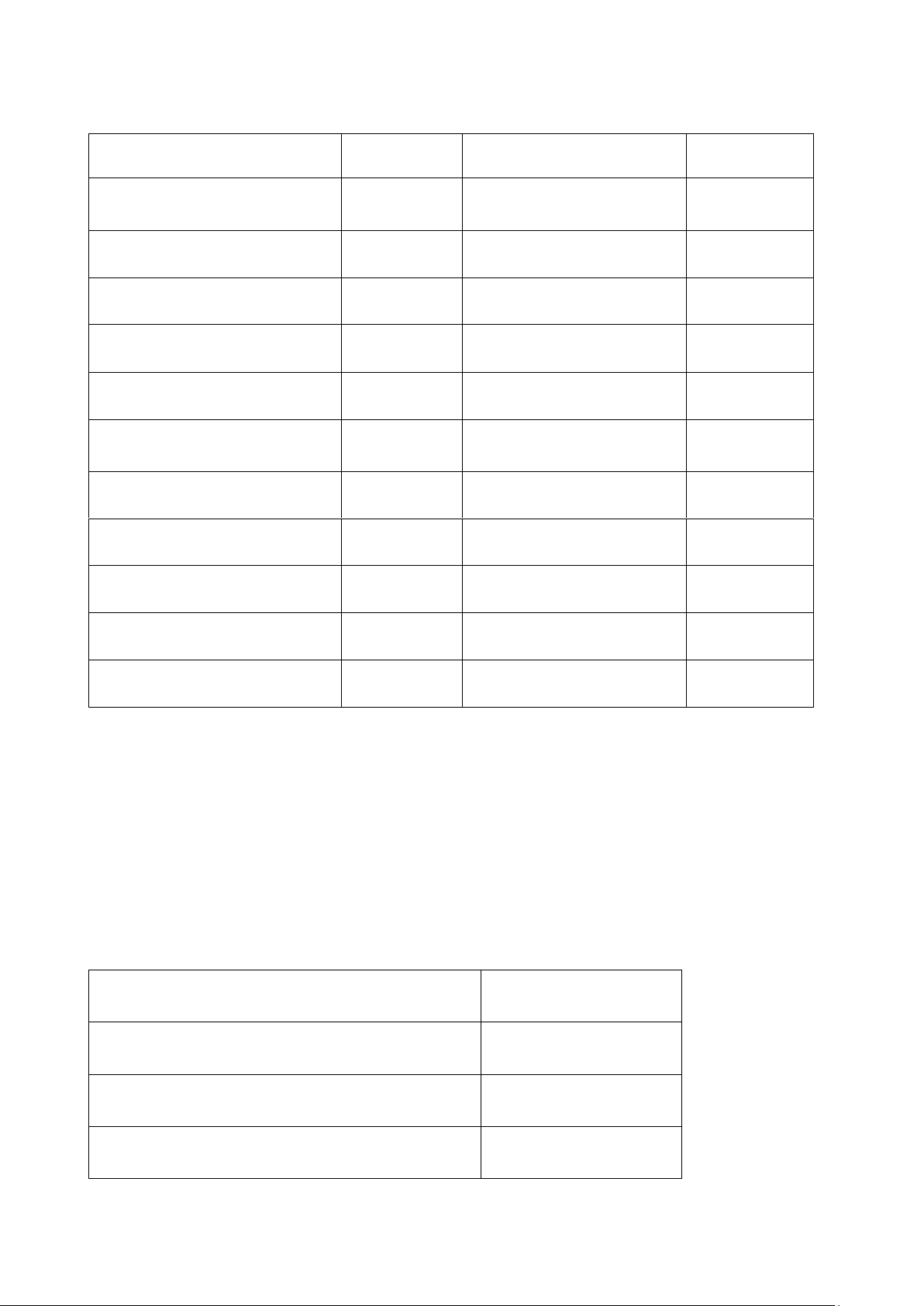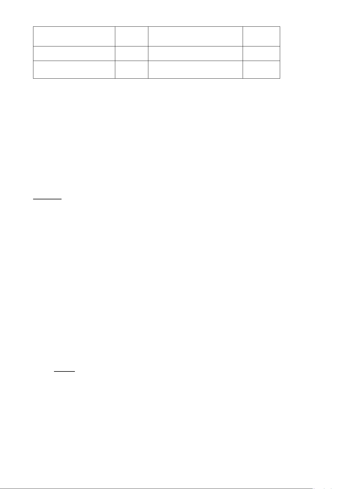 2. Phải trả cho người bán 25 3. Phải thu khách hàng 35 3. Phải trả CBCNV 10 4. Nguyên vật liệu 15 4. Thuế phải nộp NN 15 5. Hàng hóa 80 B. Tài sản dài hạn 1.070 B. Vốn chủ sở hữu 1.380 lOMoAR cPSD| 61131586 1. TSCĐ hữu hình 2. 1.200 1. Vốn góp của CSH 950 Hao mòn TSCĐHH (130) 2. LNST chưa phân phối 40