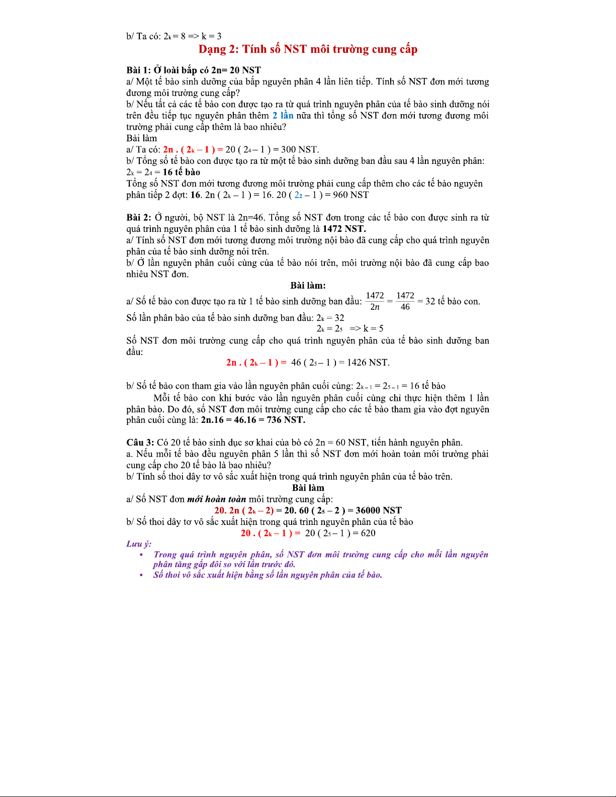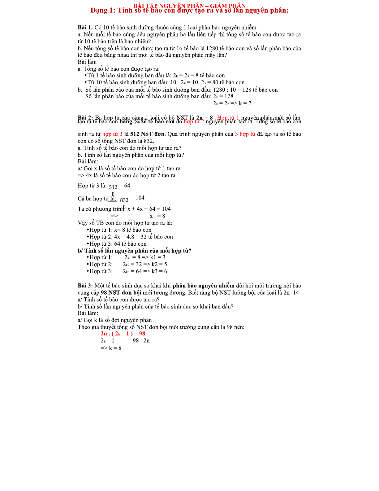Bài Tập Nguyên Phân - Giảm Phân: Các Dạng Tính Số Tế Bào TB101