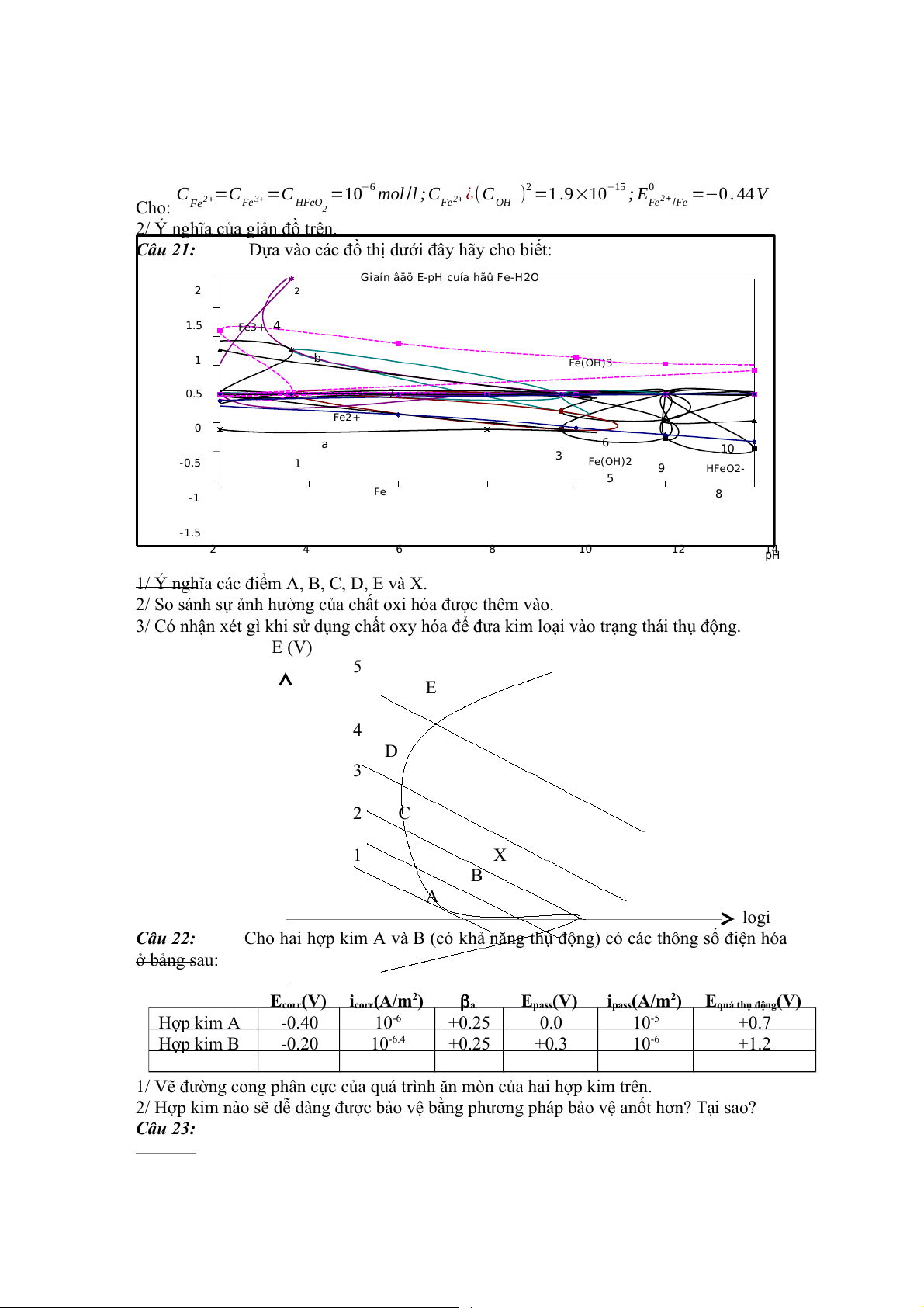 1/ Hãy vẽ đường cong phân cực đối với phản ứng ăn mòn kim loại Fe trong dung