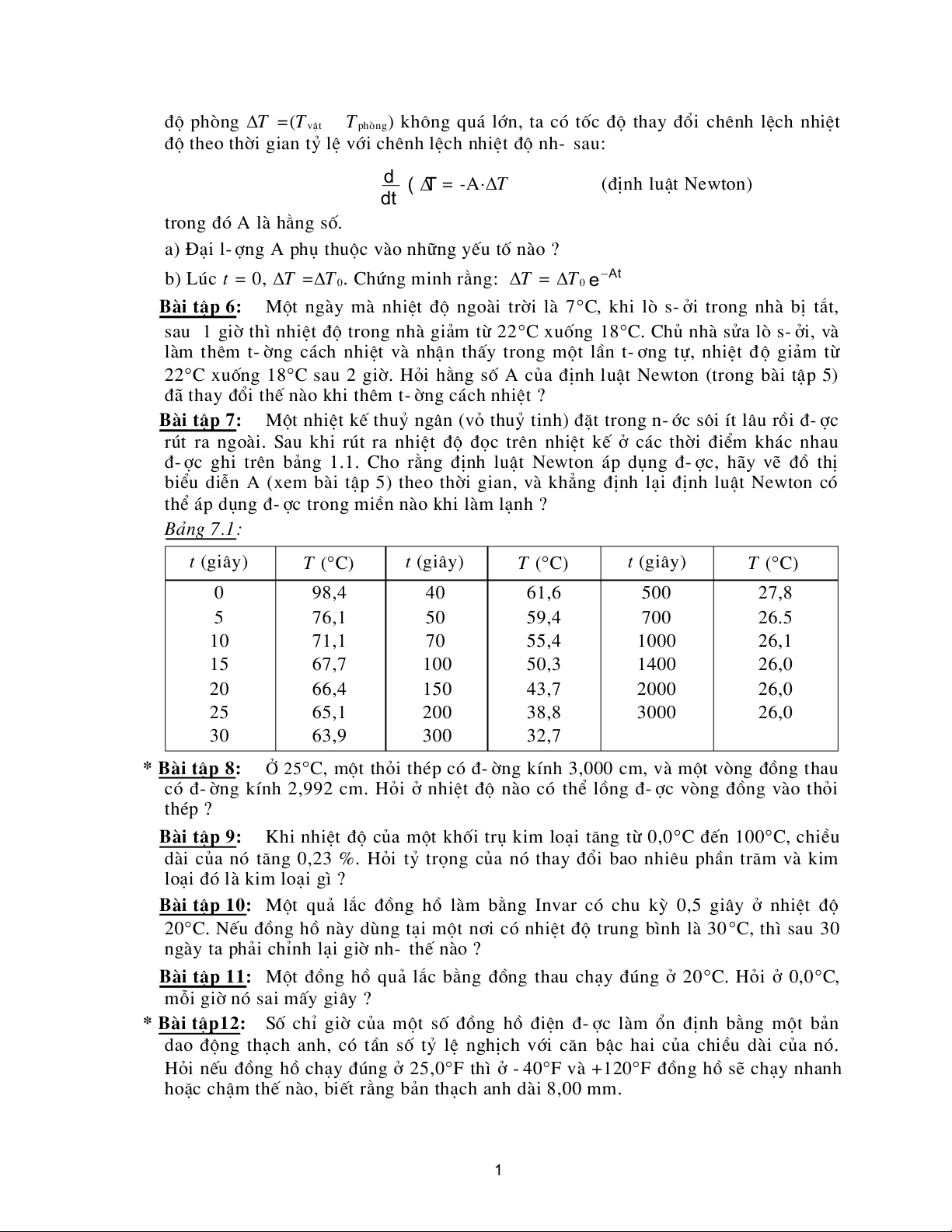 thÓ ¸p dông ®-îc trong miÒn nµo khi lµm l¹nh ? B¶ng 7.1: t (gi©y) T (C) t (gi©y) T (C) t (gi©y) T (C) 0 98,4 40 61,6 500 27,8 5 76,1 50 59,4 700 26.5 10 71,1 70 55,4 1000 26,1 15 67,7 100 50,3 1400 26,0 20 66,4 150 43,7 2000 26,0 25 65,1 200 38,8 3000 26,0 30 63,9 300 32,7 * Bµi tËp 8: