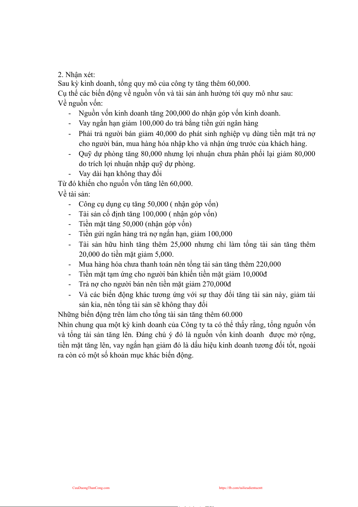 Những biến động trên làm cho tổng tài sản tăng thêm 60.000