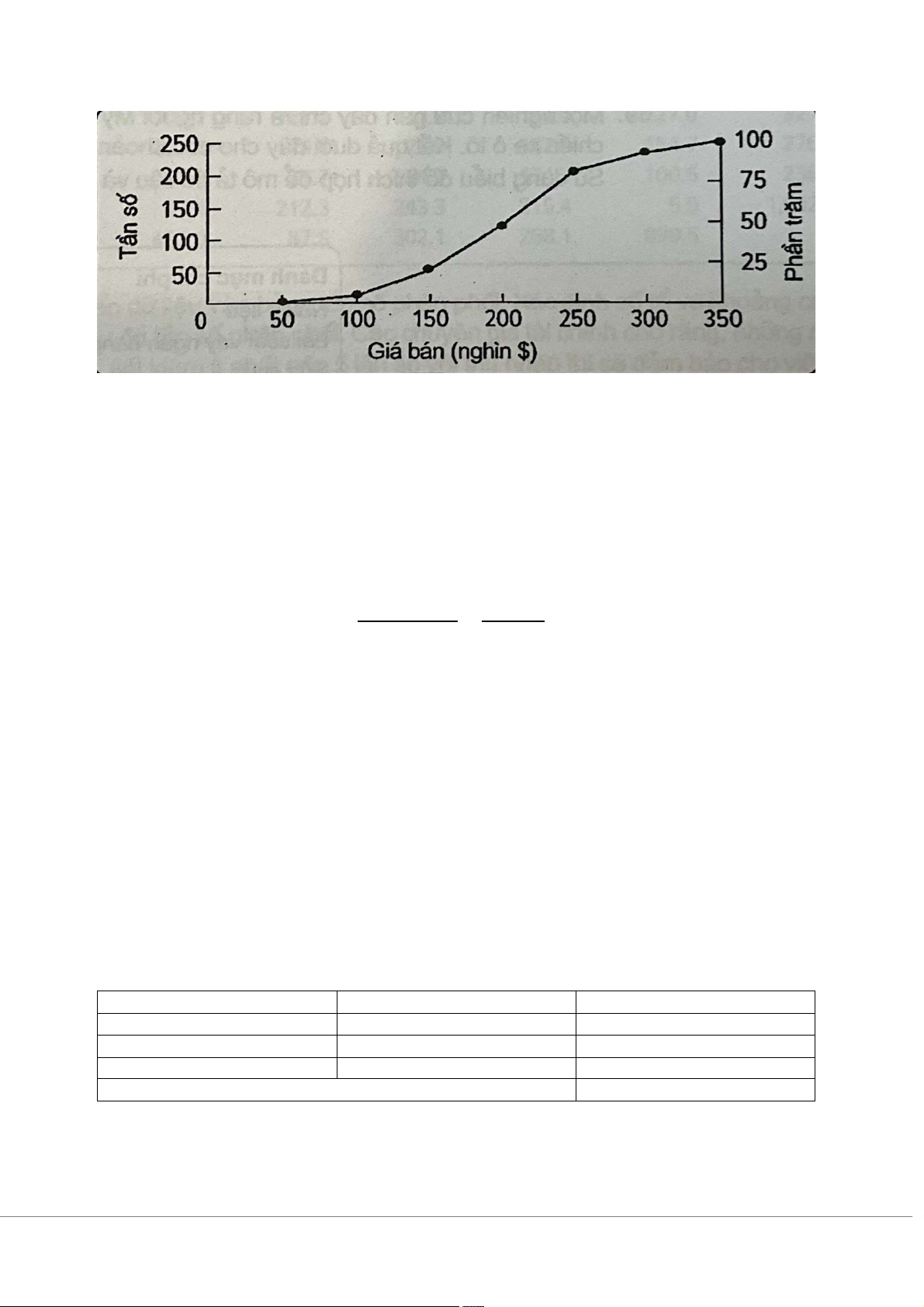 b/ Có tần số cao nhất trên biểu đồ là 250 ứng mới giá bán là 350 nghìn đô ứng với + tổng số