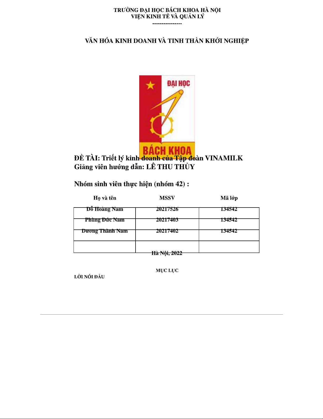 Bài Tập Nhóm 42: Phân Tích Triết Lý Kinh Doanh của Vinamilk