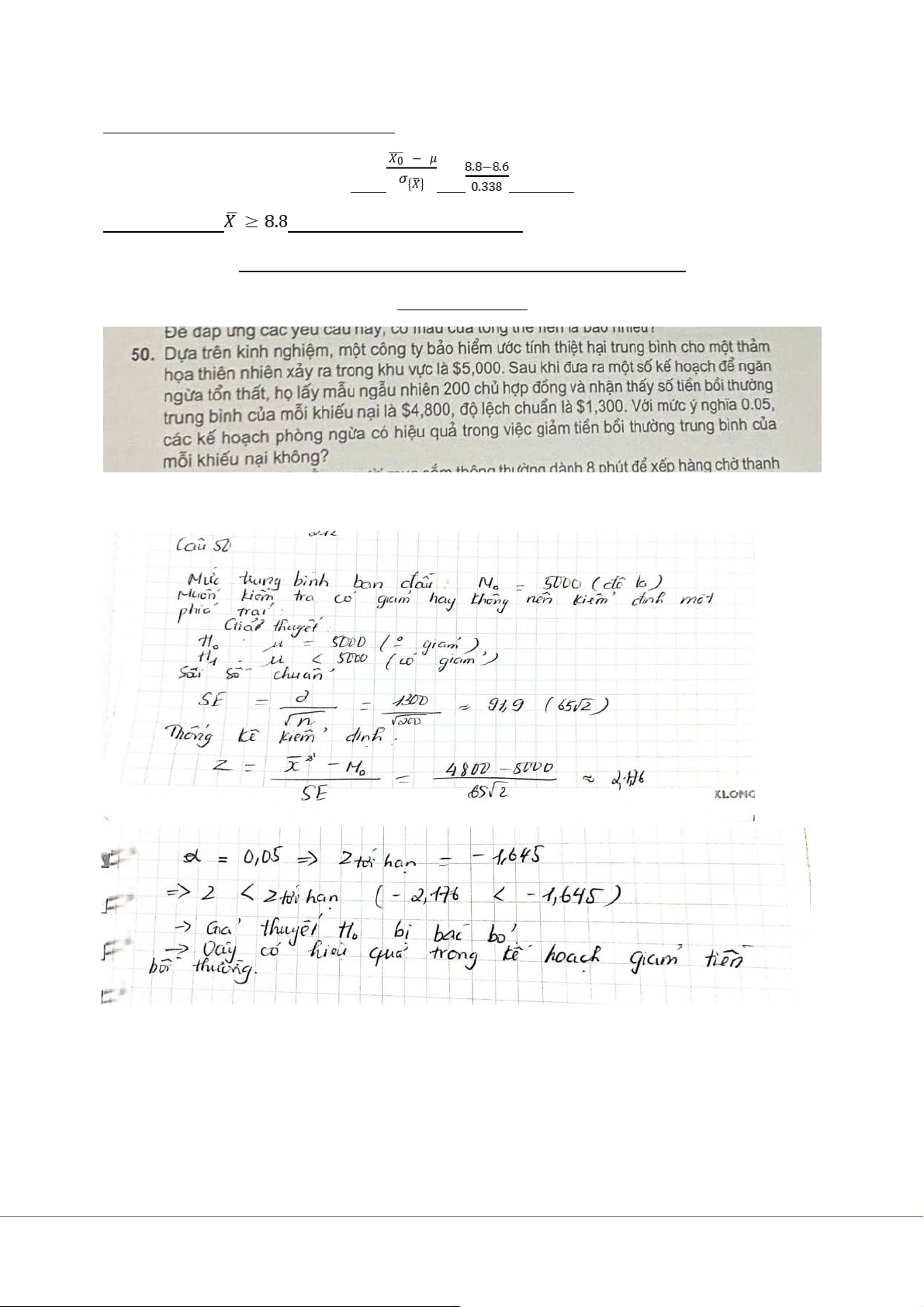 nghỉ việc không lương trung bình của mẫu này tối thiểu là 8.8 tuần? BÀI GIẢI