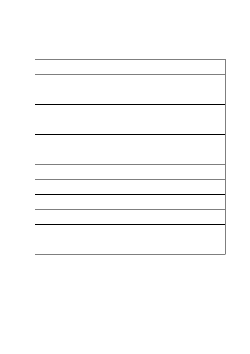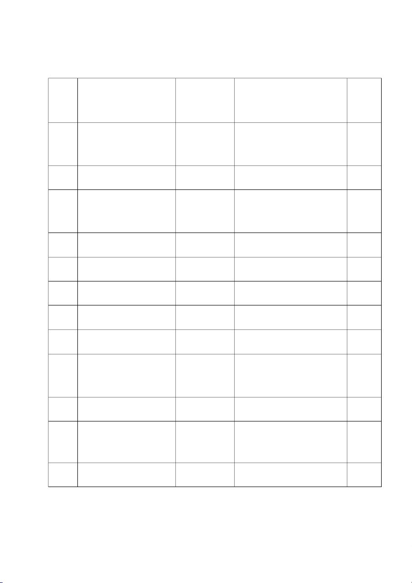 Phân công nhiệm vụ viên thành Mục 1.1 + 1.2 1 Nguyễn Thu Trang 26A7512486 100% ( Phần II ) 2 Đỗ Hồng Nhung 26A7512030 Mục 2.2 (Phần I) 100% Mục 2 + Kết luận 3 Lê Thu Trang 26A7512485 100% ( Phần II ) 4 Phạm Thị Ly 26A7512010 Thuyết trình 100% 5 Lương Trường Phúc 26A4062549 Làm word 100% 6 Phạm Thị Thanh Tình 26A7512482 Làm powerpoint 100% 7 Vũ Hồng Nhi 26A4070603 Mục 2.1 ( Phần I) 100% 8 Hoàng Thị Minh Ngọc 26A7512023 Thuyết trình 100% Nguyễn Thị Hồng Mục 1.2+ 1.3 9 26A7511112 100% Diễm ( Phần I) 10 Nguyễn Ngọc Mai 26A7512014 Làm powerpoint 100%
