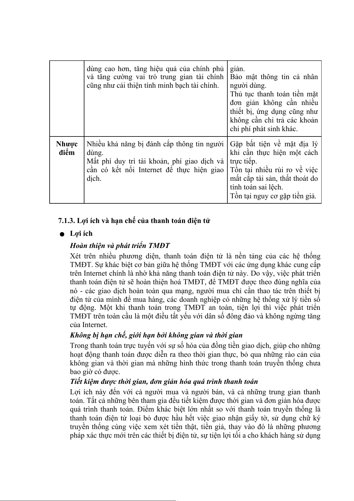 7.1.3. Lợi ích và hạn chế của thanh toán điện tử..................................................15
