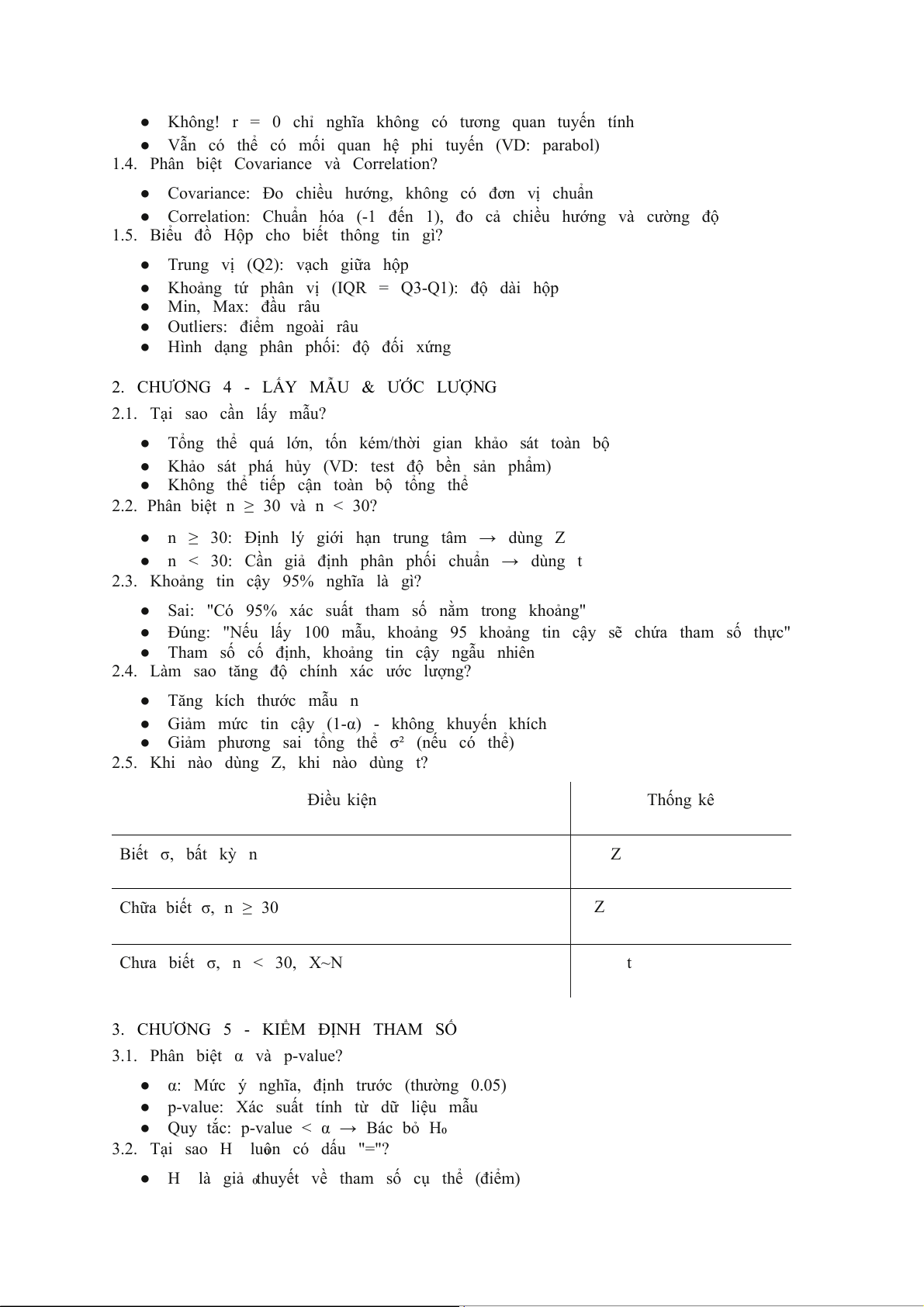 ● Chuẩn hóa: Z = (x - μ)/(σ/√n) ~ N(0,1)