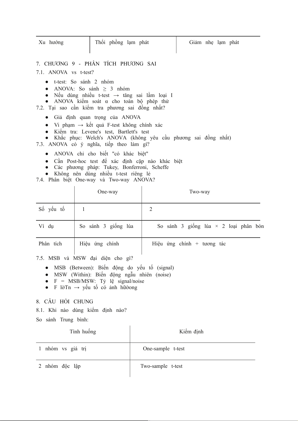 7. CHƯƠNG 9 - PHÂN TÍCH PHƯƠNG SAI 7.1. ANOVA vs t-test? ● t-test: So sánh 2 nhóm
