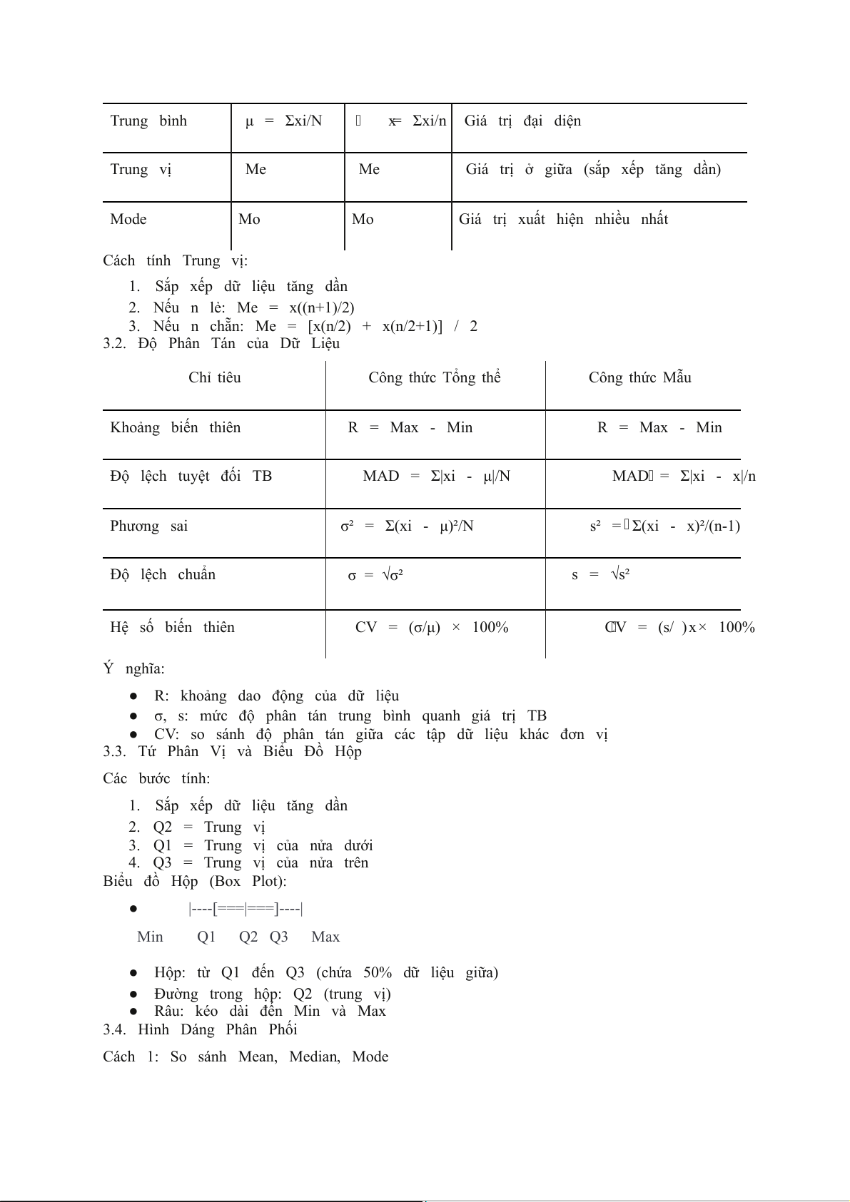 3.3. Tứ Phân Vị và Biểu Đồ Hộp Các bước tính:
