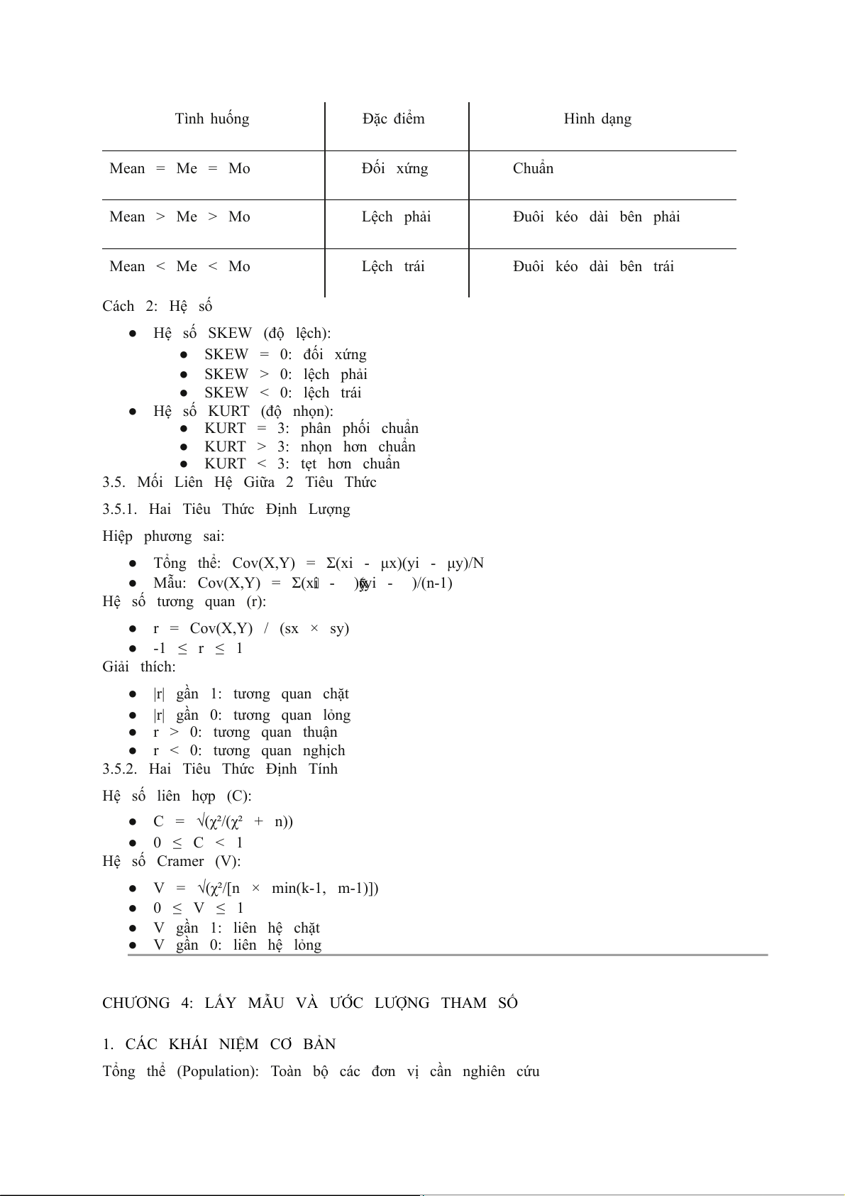 ● Tổng thể: Cov(X,Y) = Σ(xi - μx)(yi - μy)/N