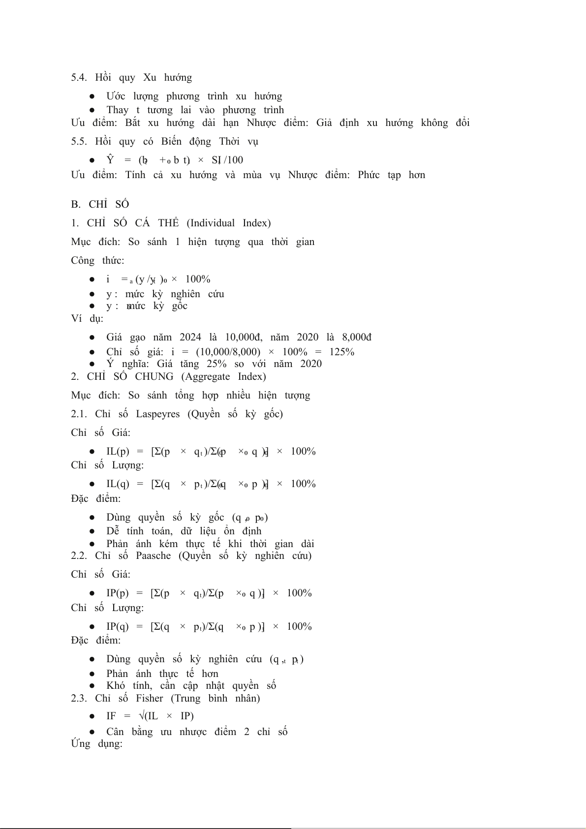 ● VD: Doanh thu tháng 12 thường cao do mua sắm cuối năm 6.5. Laspeyres vs Paasche? Laspeyres Paasche Quyền số Kỳ gốc Kỳ hiện tại Ưu điểm Dễ tính, so sánh được Phản ánh thực tế Nhược điểm Lỗi thời theo thời gian Khó tính, khó so sánh Xu hướng Thổi phồng lạm phát Giảm nhẹ lạm phát