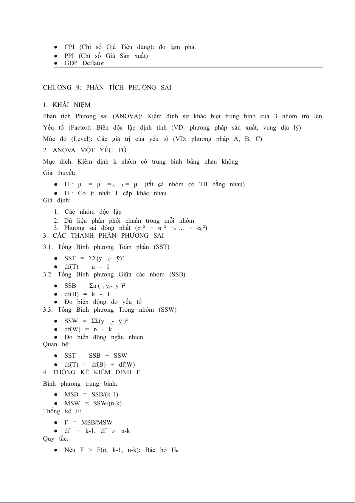 ● Trong ANOVA để so sánh nhiều nhóm