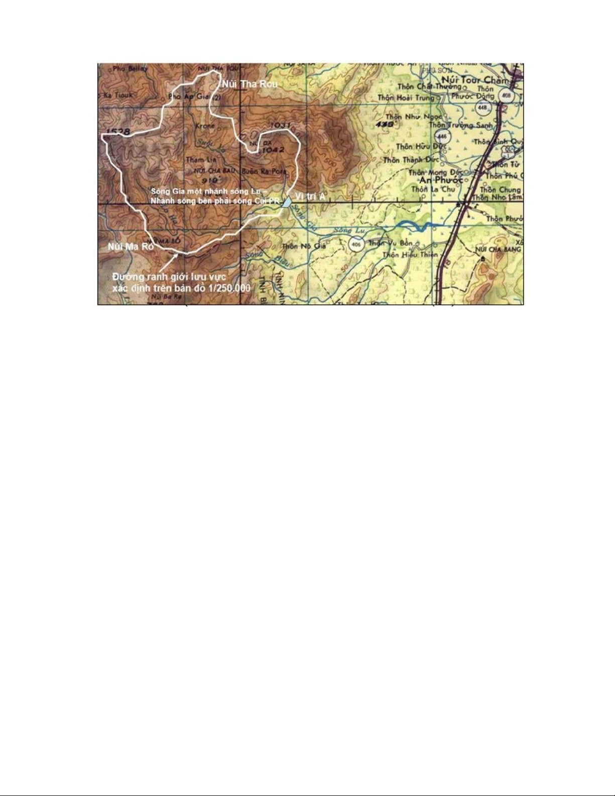 Hình 1: Ví dụ về xác định đường ranh giới lưu vực sông trên bản đồ giấy 1/250.000