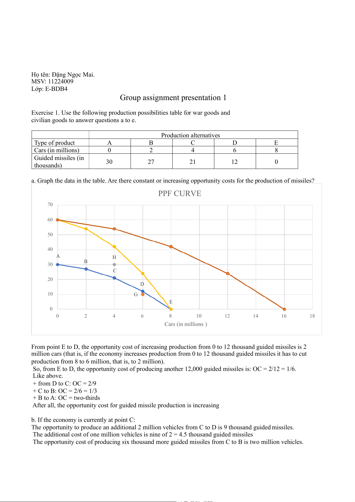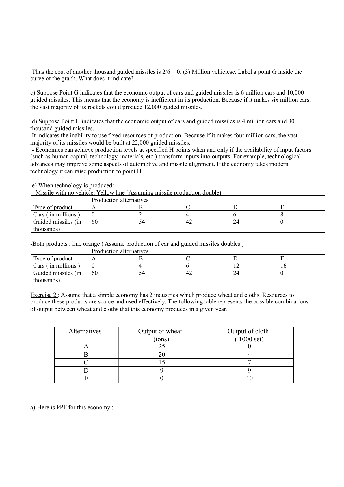 civilian goods to answer questions a to e. Production alternatives Type of product A B C D E Cars (in millions) 0 2 4 6 8 Guided missiles (in thousands) 30 27 21 12 0
