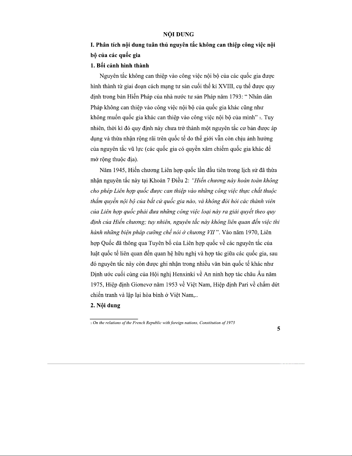 Bài Tập Nhóm Môn Công Pháp Quốc Tế: Phân Tích Nguyên Tắc Không Can Thiệp