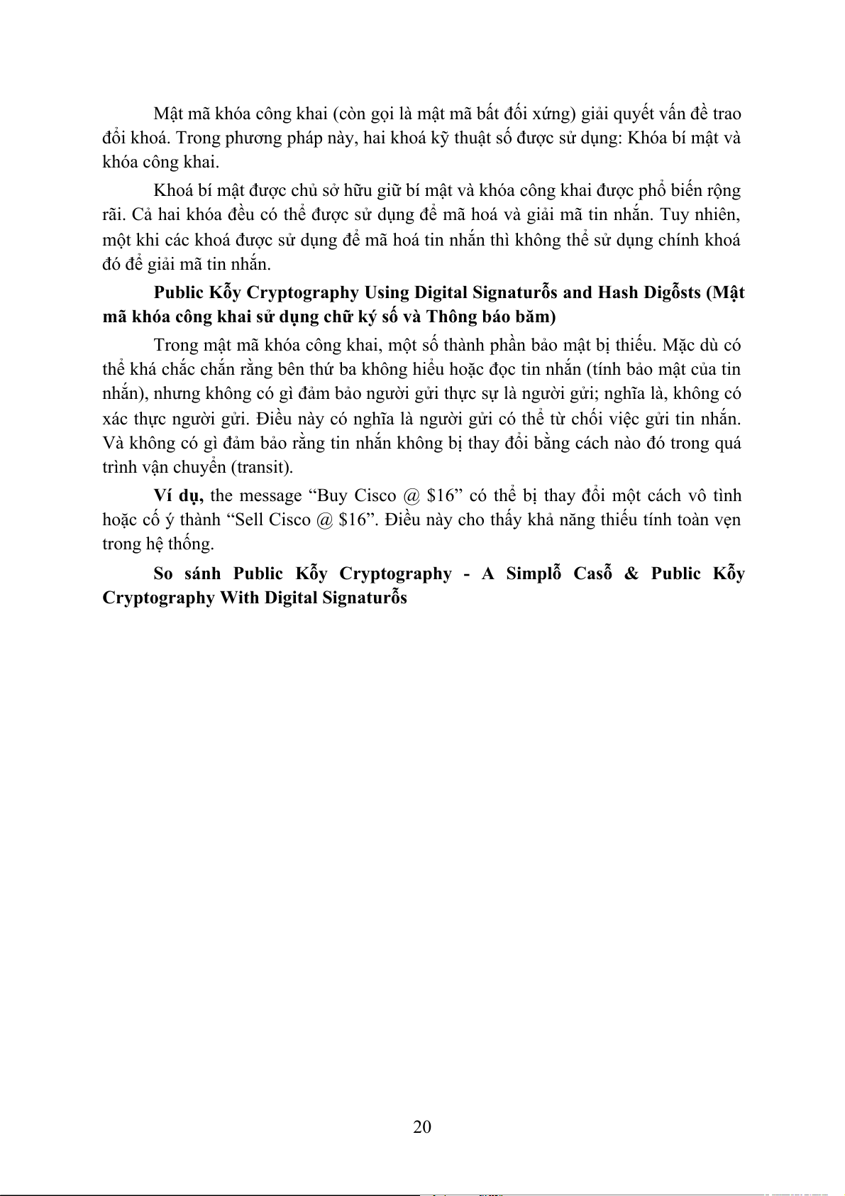 hoặc cố ý thành “Sell Cisco @ $16”. Điều này cho thấy khả năng thiếu tính toàn vẹn trong hệ thống.