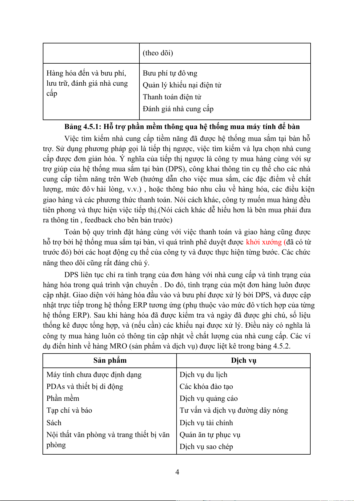 dụ điển hình về hàng MRO (sản phẩm và dịch vụ) được liệt kê trong bảng 4.5.2. Sản phẩm Dịch vụ