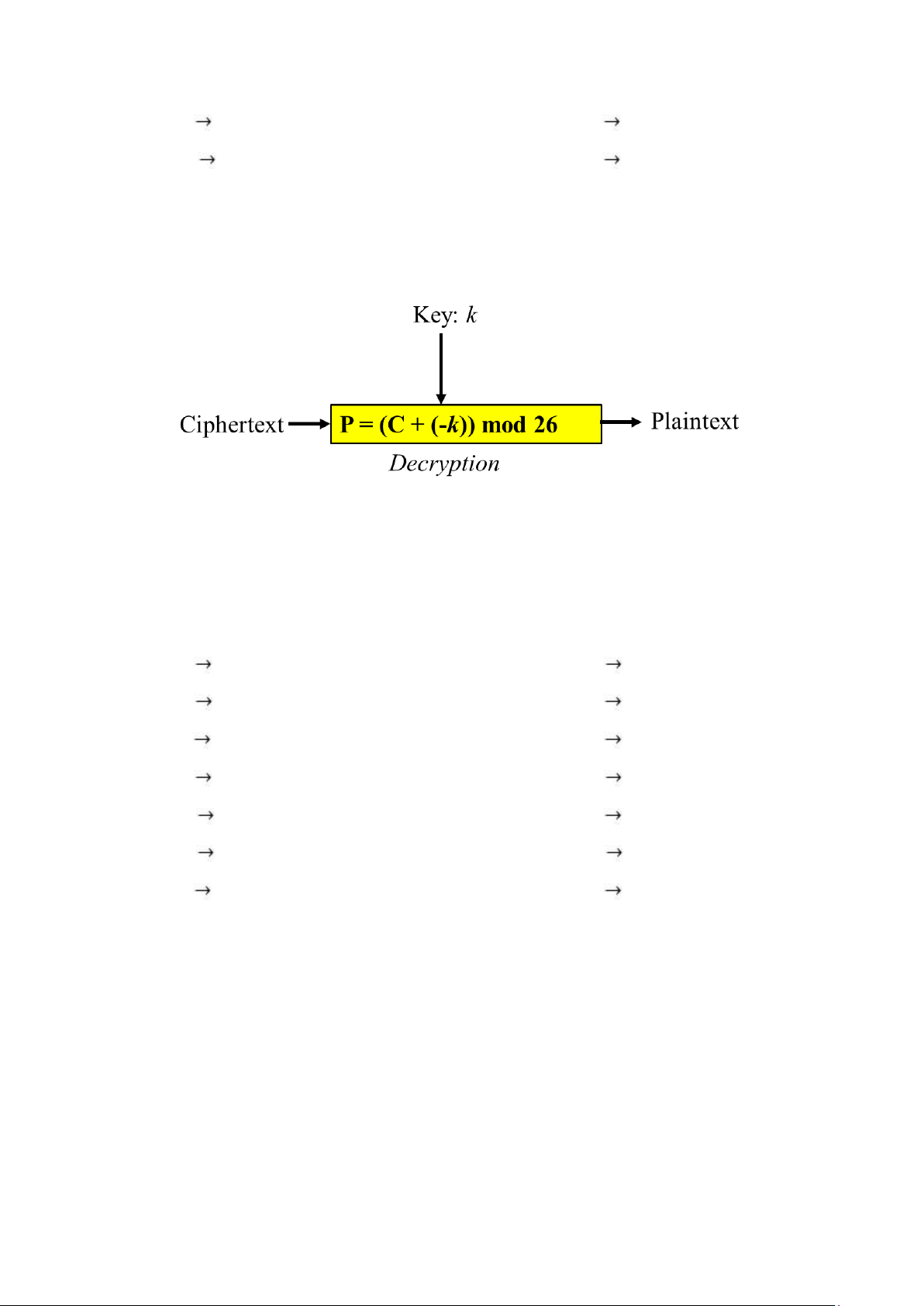 VD: Giả sử thu được ciphertext như ví dụ ở trên, biết khóa k = 5. Tìm plaintext? k = 5 => -k = 21 A 00
