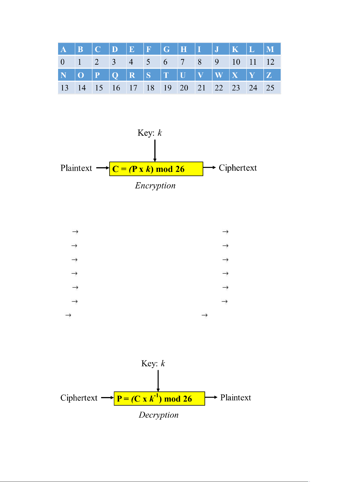 => Decryption: (17 + 21) mod 26 = 12 M => P = “VIETNAM” 2. Multiplicative Cipher: