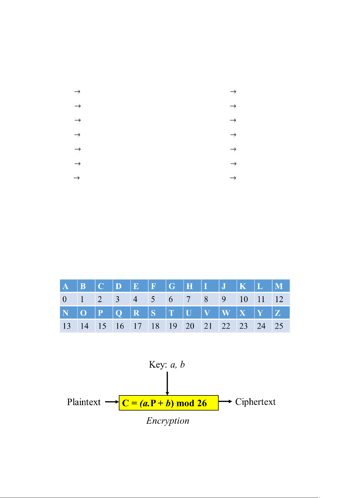 => Decryption: (08 x 21) mod 26 = 12 M => P = “VIETNAM” 3. Affine Cipher: