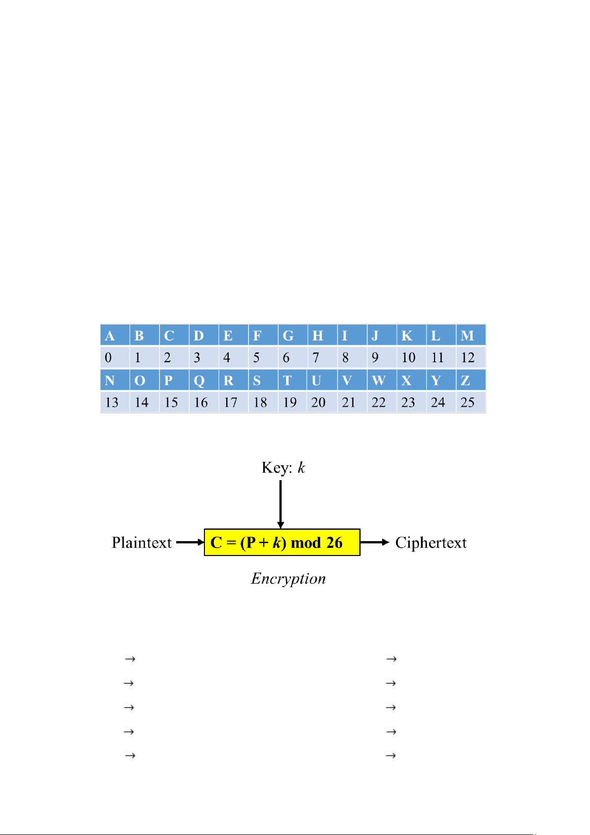 Ở đây, khóa k là một số nguyên có giá trị thuộc tập Z26 = {0,1,2,…,25}