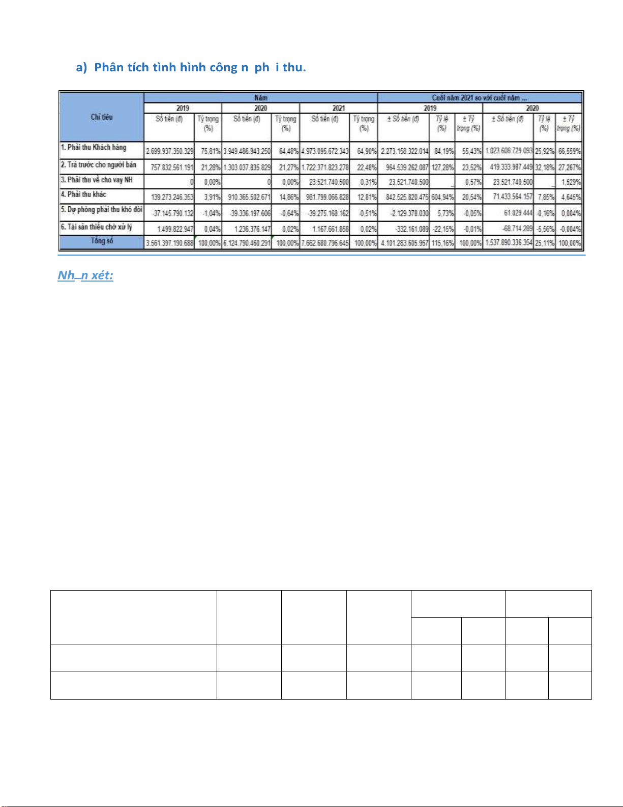 tăng trưởng là 172,23% và 41,34%. Tỷ trọng Nợ DH năm 2021 so với năm 2019 và 2020 giảm lần