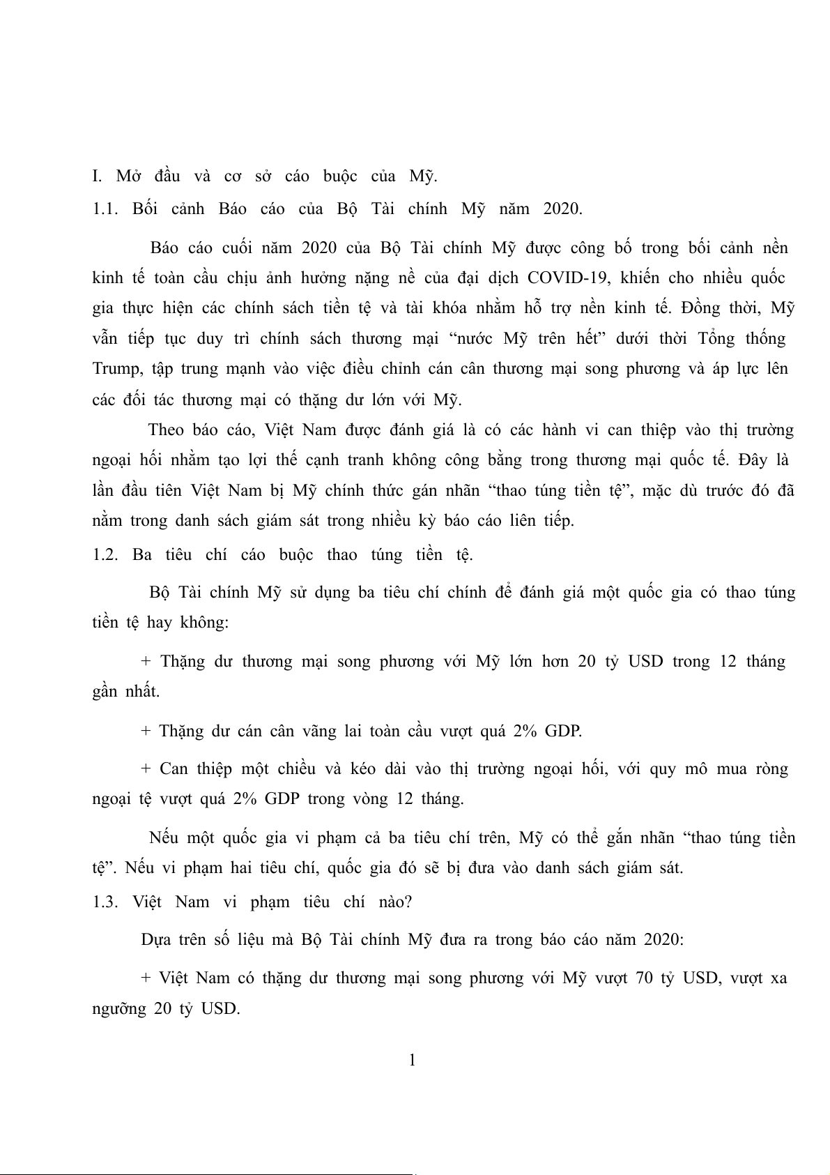 1.1. Bối cảnh Báo cáo của Bộ Tài chính Mỹ năm 2020.........................................................