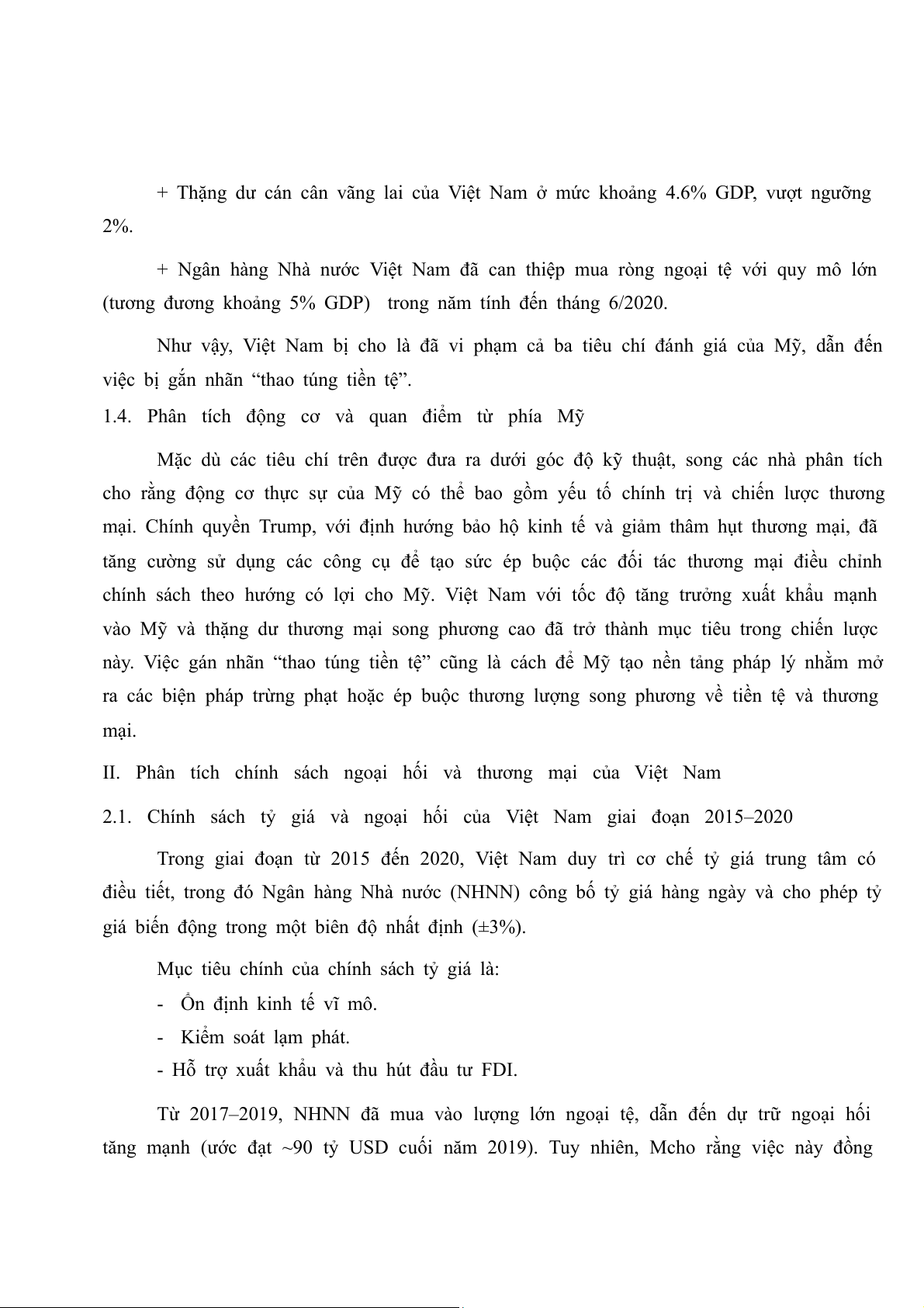 II. Phân tích chính sách ngoại hối và thương mại của Việt Nam.................................................
