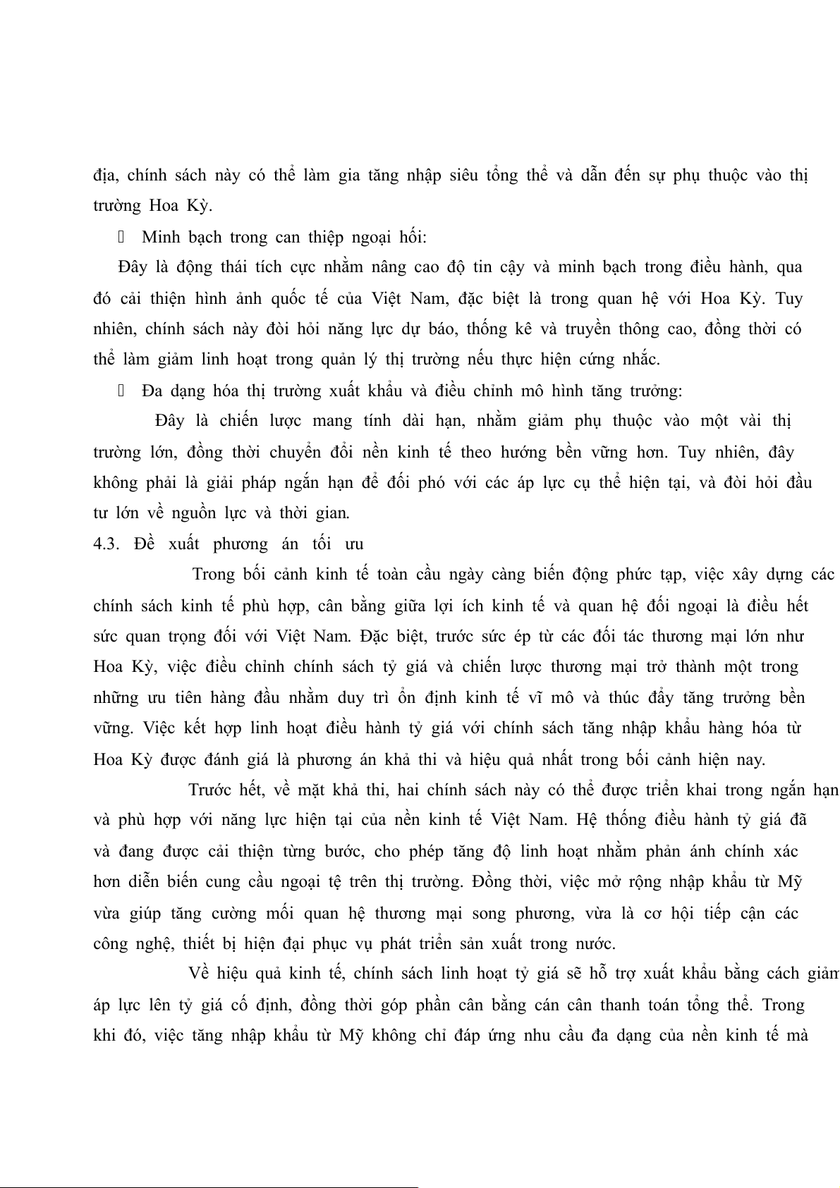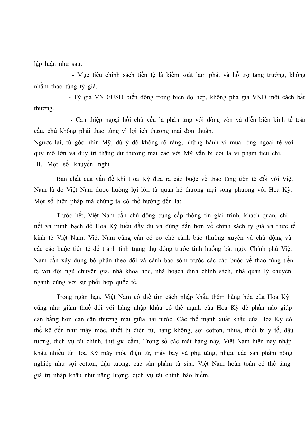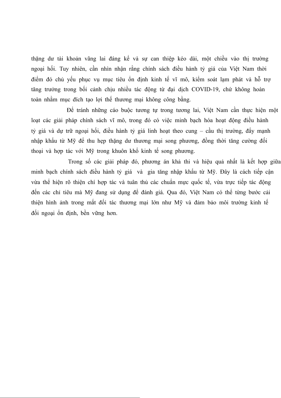 minh bạch chính sách điều hành tỷ giá và gia tăng nhập khẩu từ Mỹ. Đây là cách tiếp cận