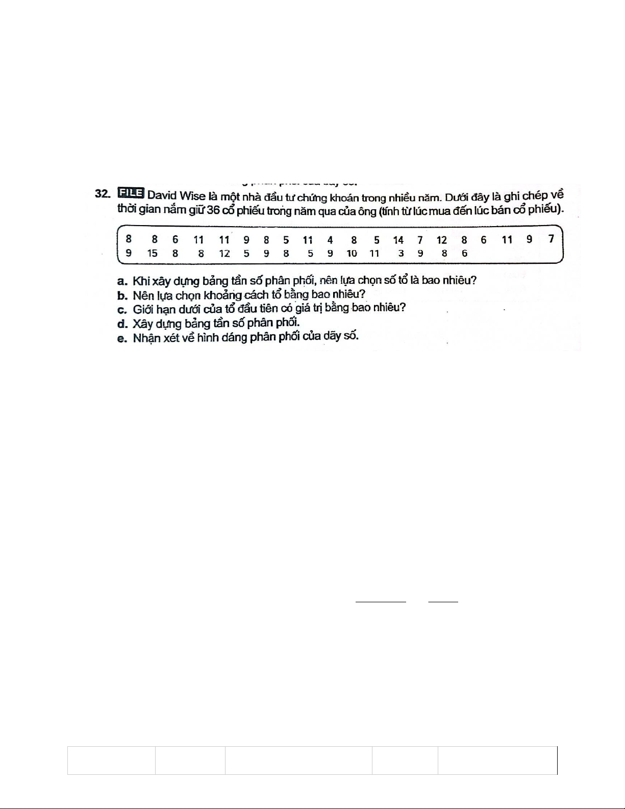 - Số lượng quan sát (n): 36 a) Số tổ k = 6 vì 2k = 64 > 36. max−min −
