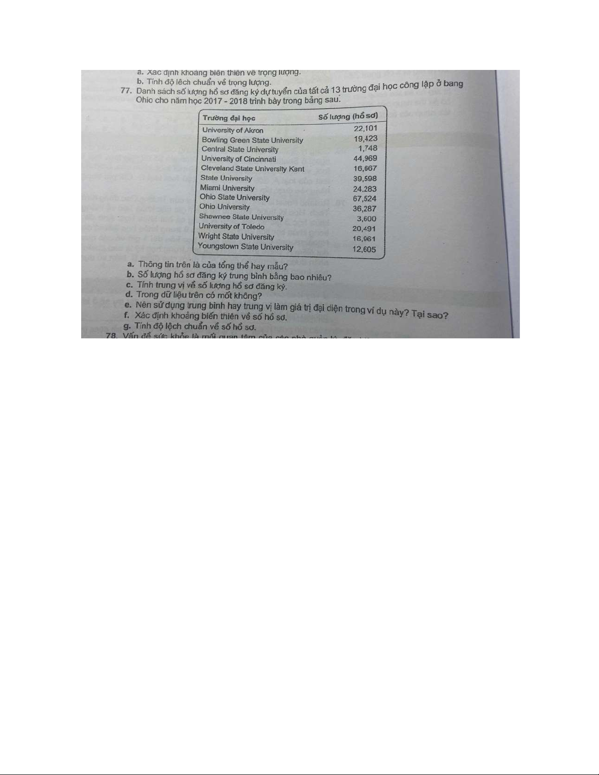 f. Khoảng biến thiên = max − min = 67,524 − 1,748 = 65,776.