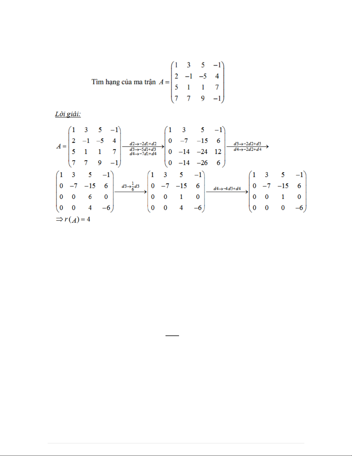 7.3.3 Tìm hạng của ma trận bằng phương pháp sử dụng các phép biến đổi sơ cấp
