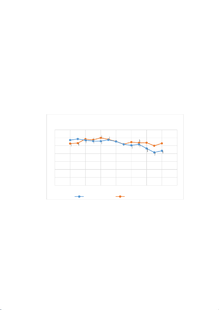 ở cuối giai đoạn nghiên cứu. Mặc dù chỉ ghi nhận sự dao động nhẹ trong khoảng 2.5 đến