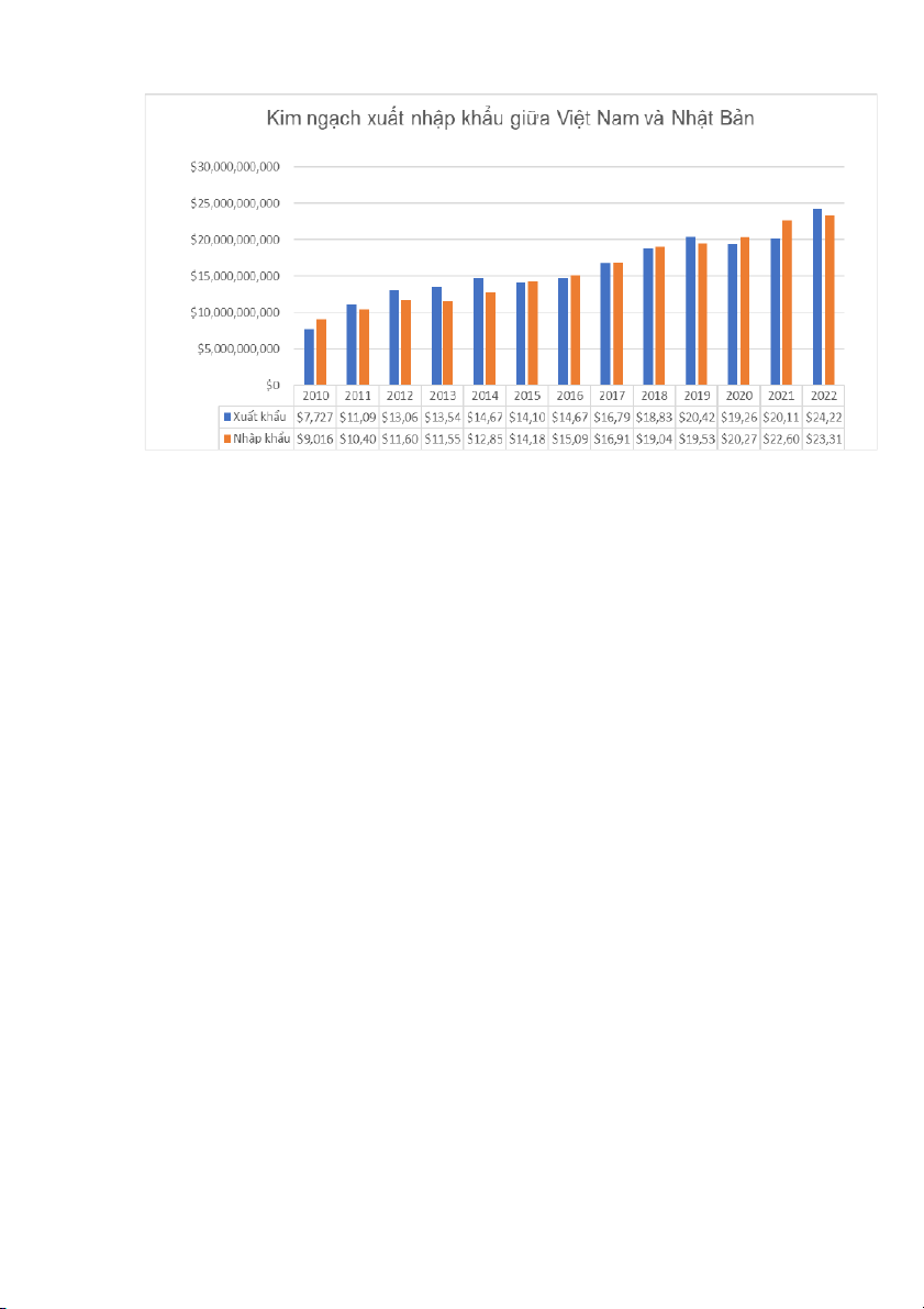 nhập khẩu và xuất khẩu giữa Việt Nam và Nhật Bản trong giai đoạn 2010-2022. Nghiên 2