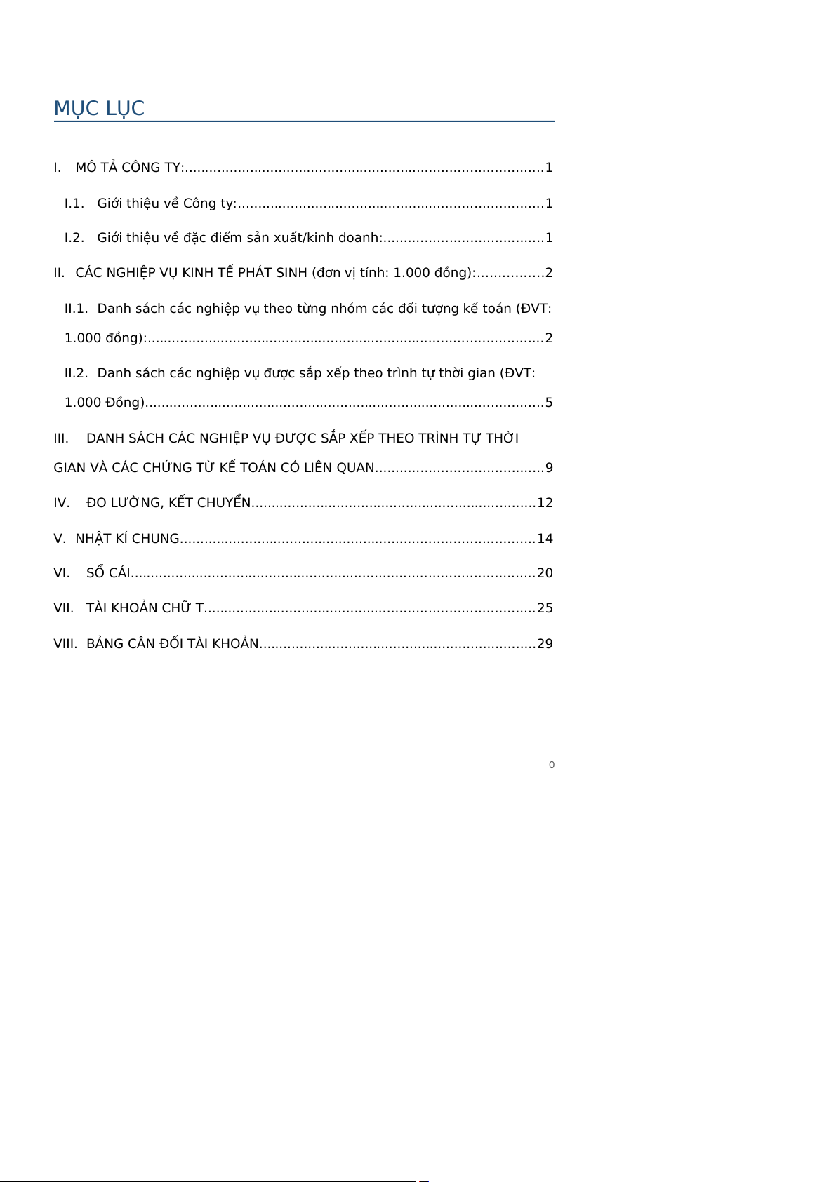VIII. BẢNG CÂN ĐỐI TÀI KHOẢN....................................................................29 0 I. MÔ TẢ CÔNG TY: