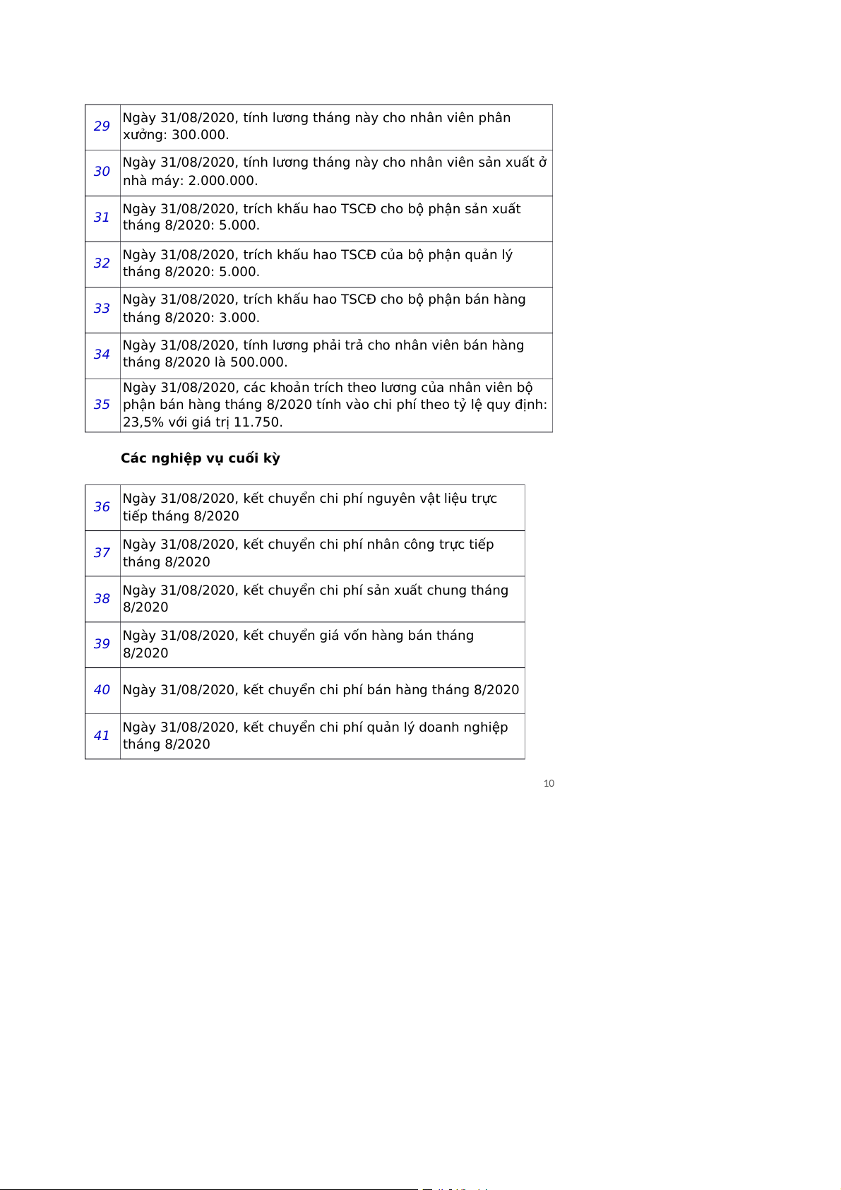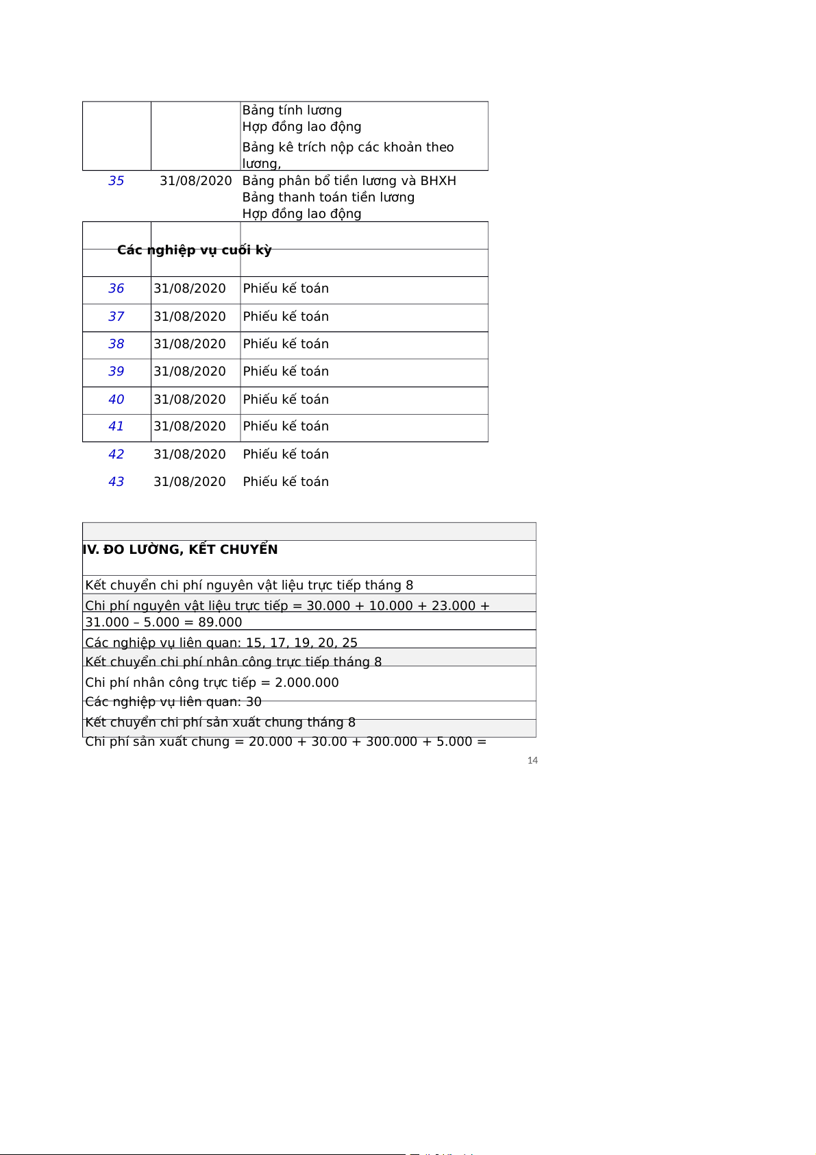 Các nghiệp vụ cuối kỳ 36 31/08/2020 Phiếu kế toán 37 31/08/2020 Phiếu kế toán 38 31/08/2020 Phiếu kế toán 39 31/08/2020 Phiếu kế toán 40 31/08/2020 Phiếu kế toán 41 31/08/2020 Phiếu kế toán 42 31/08/2020 Phiếu kế toán 43 31/08/2020 Phiếu kế toán