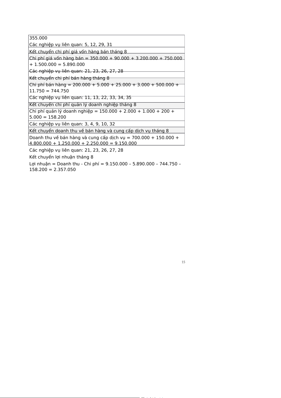 Kết chuyển lợi nhuận tháng 8